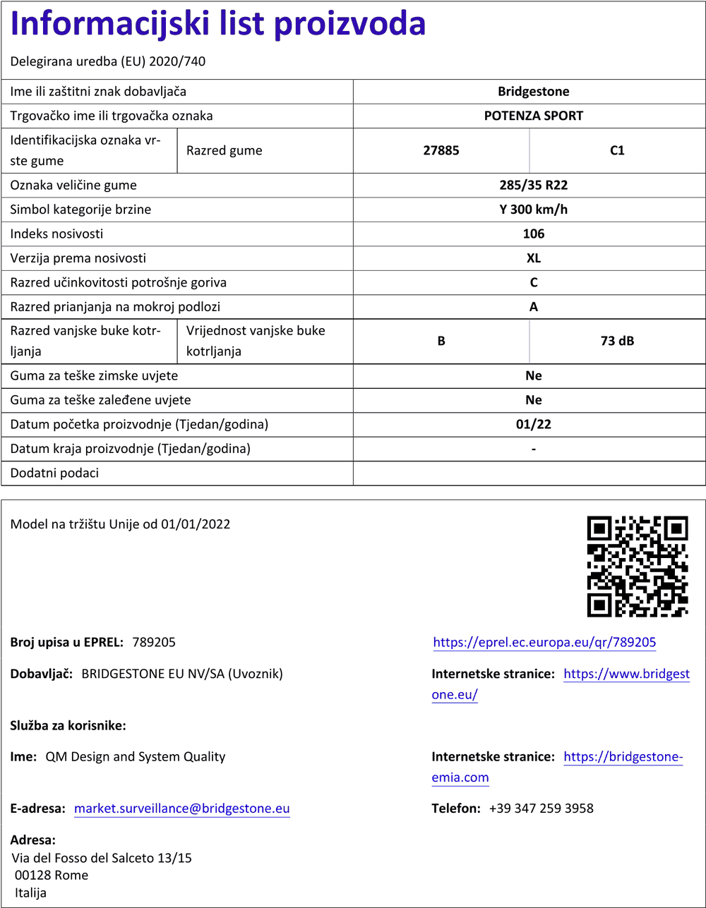 Ljetne gume bridgestone POTENZA SPORT 285 / 35 R R22 106Y