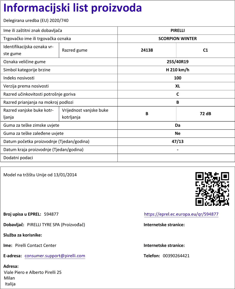 Zimske gume pirelli SCORPION WINTER 255 / 40 R R19 100H