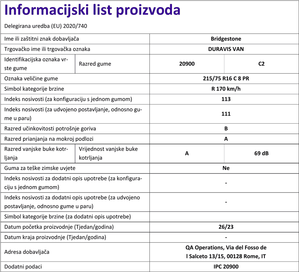 Ljetne gume bridgestone DURAVIS VAN 215 / 75 R R16C 113R