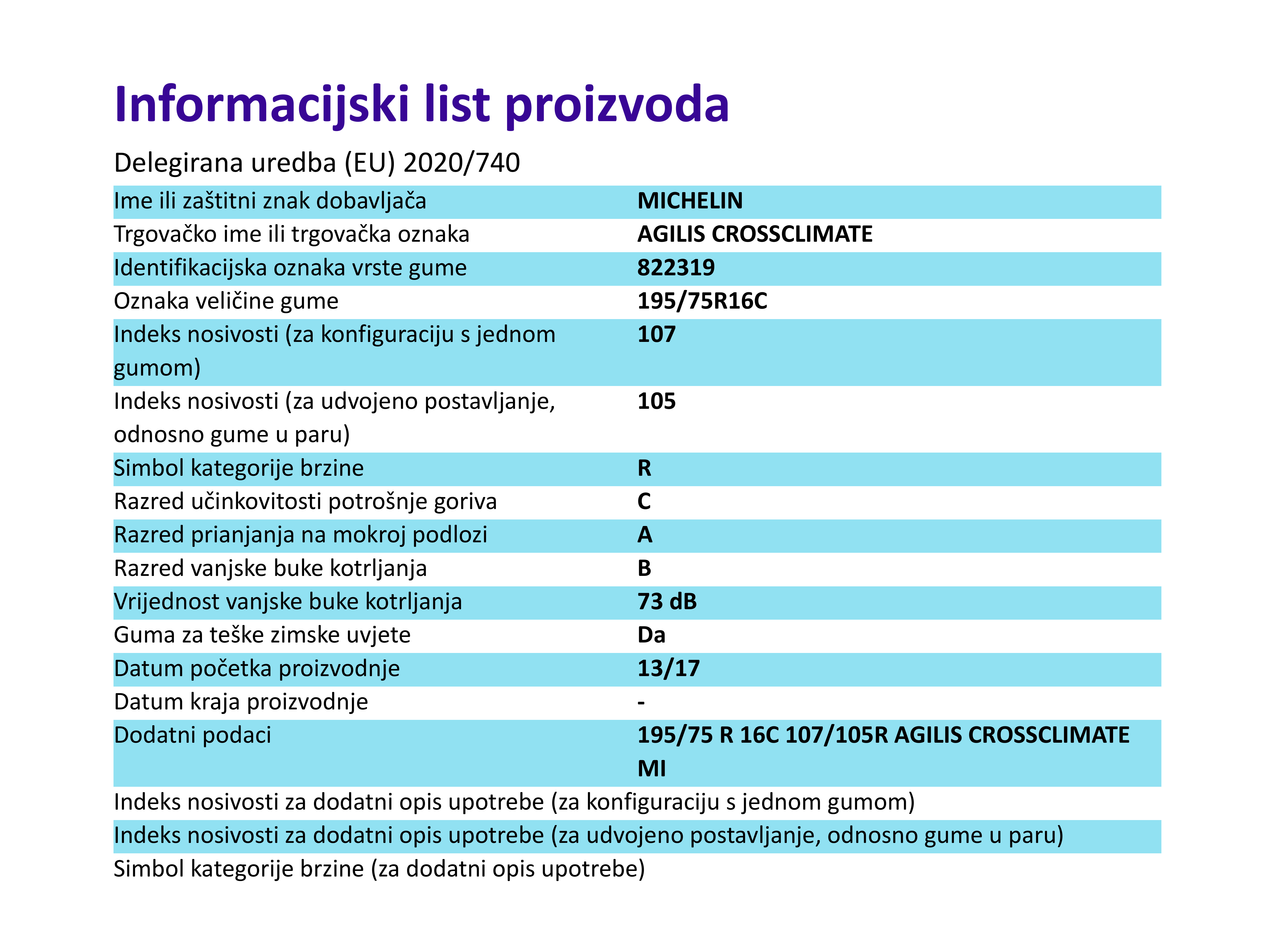 Cjelogodisnje kombi i polu gume michelin AGILIS CROSSCLIMATE 195 / 75 R R16C 107R