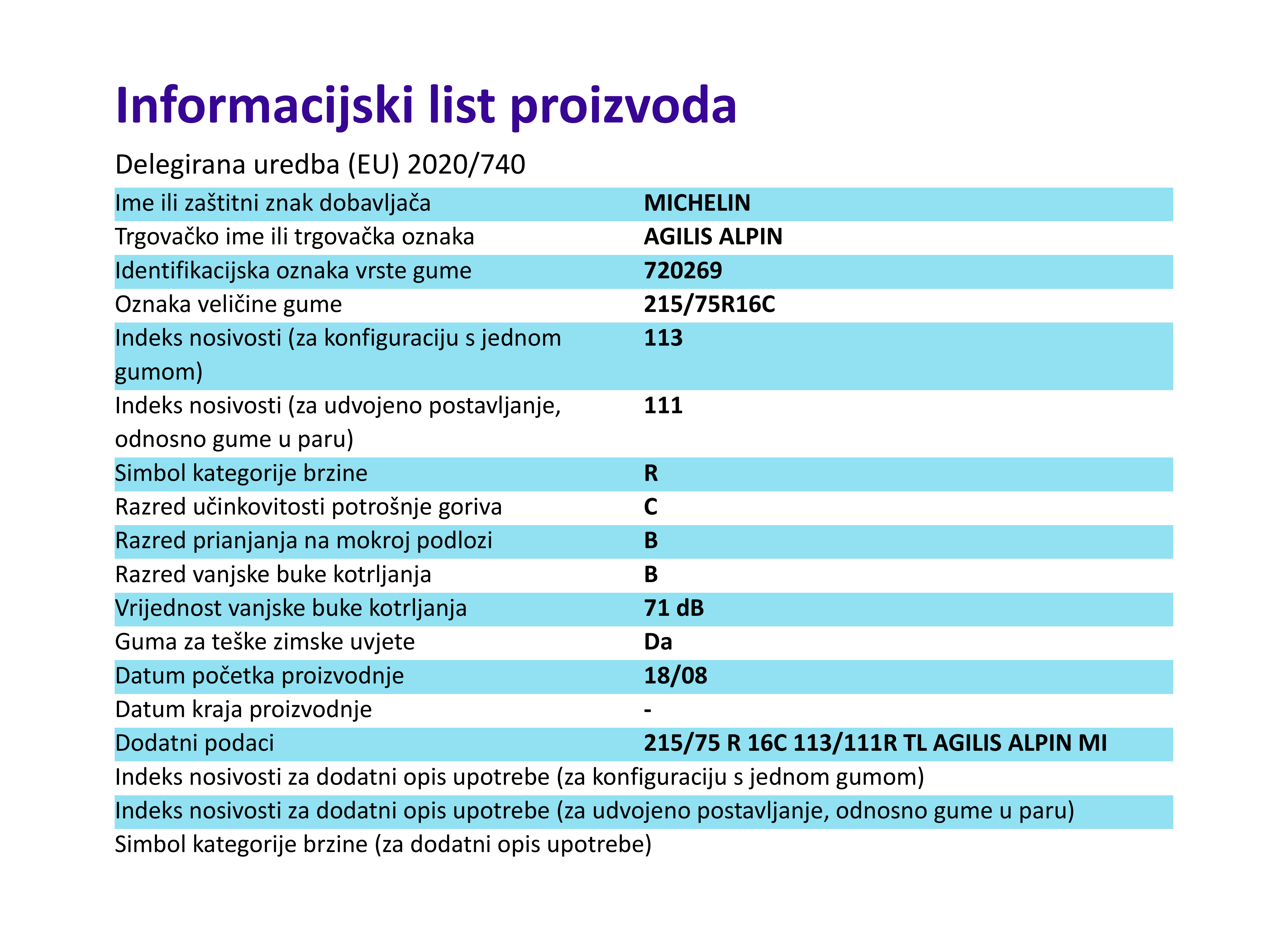 Zimske gume michelin AGILIS ALPIN 215 / 75 R R16C 113R