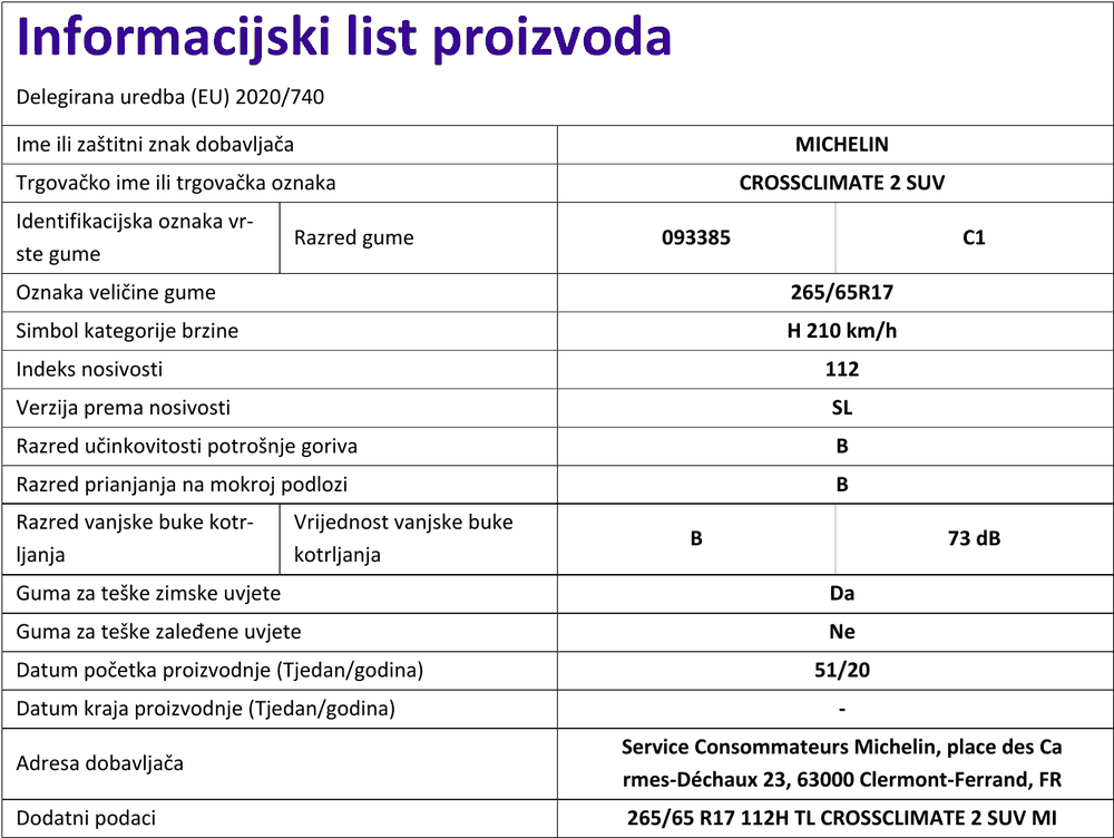 Cjelogodišnje gume michelin CROSSCLIMATE 2 265 / 65 R R17 112H