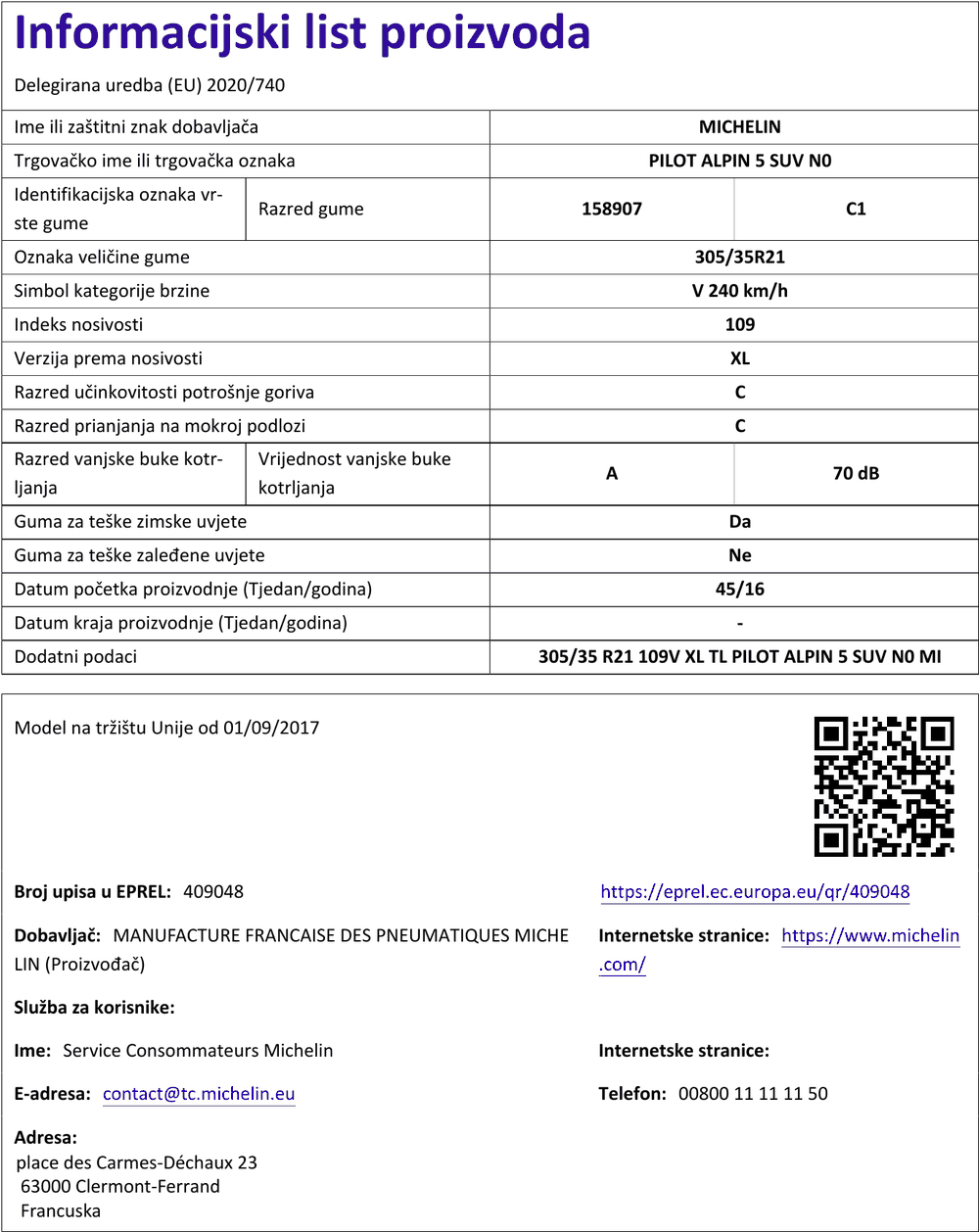 Zimske gume michelin PILOT ALPIN 5 SUV 305 / 35 R R21 109V