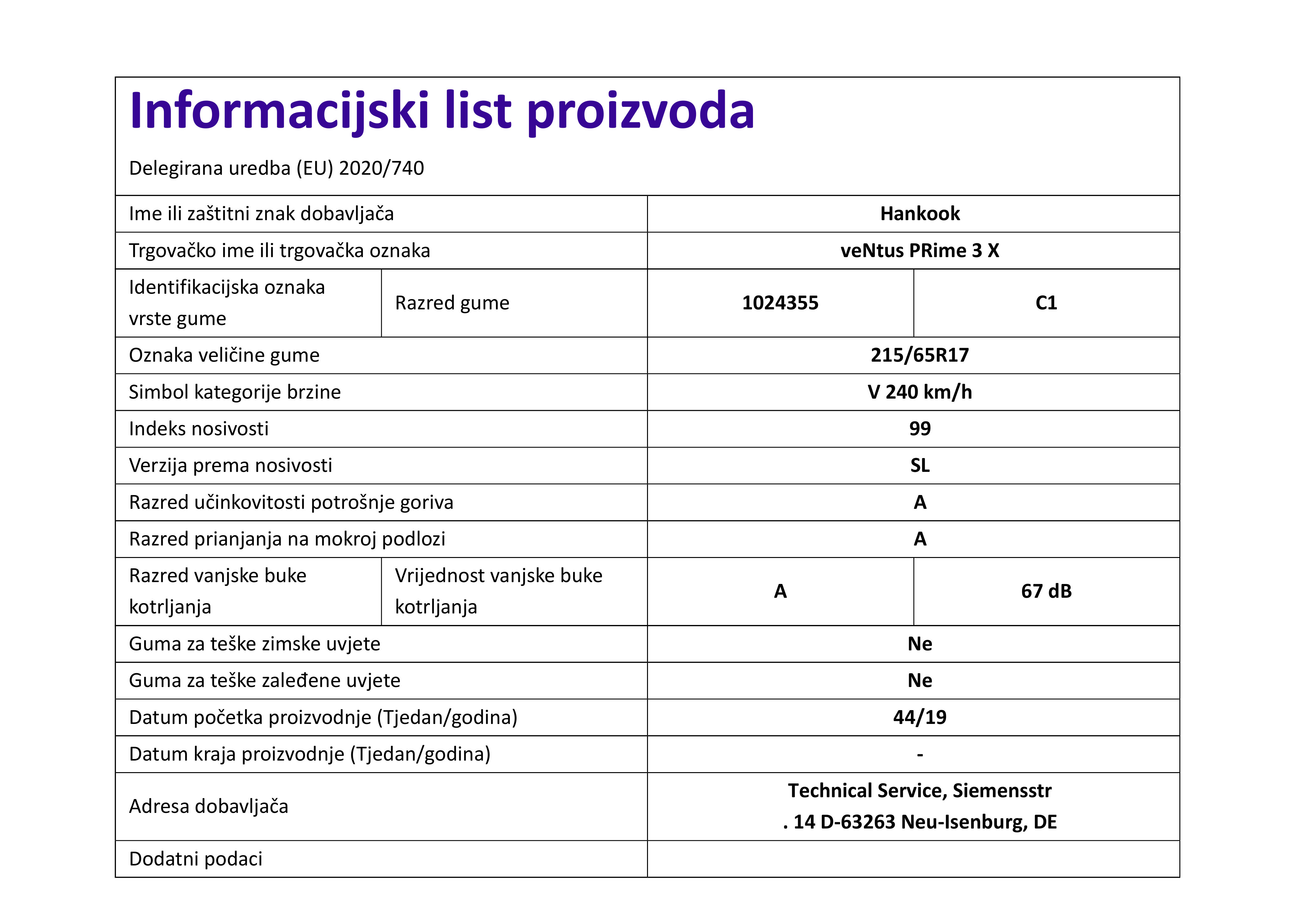 | Iskoristivost goriva | A |