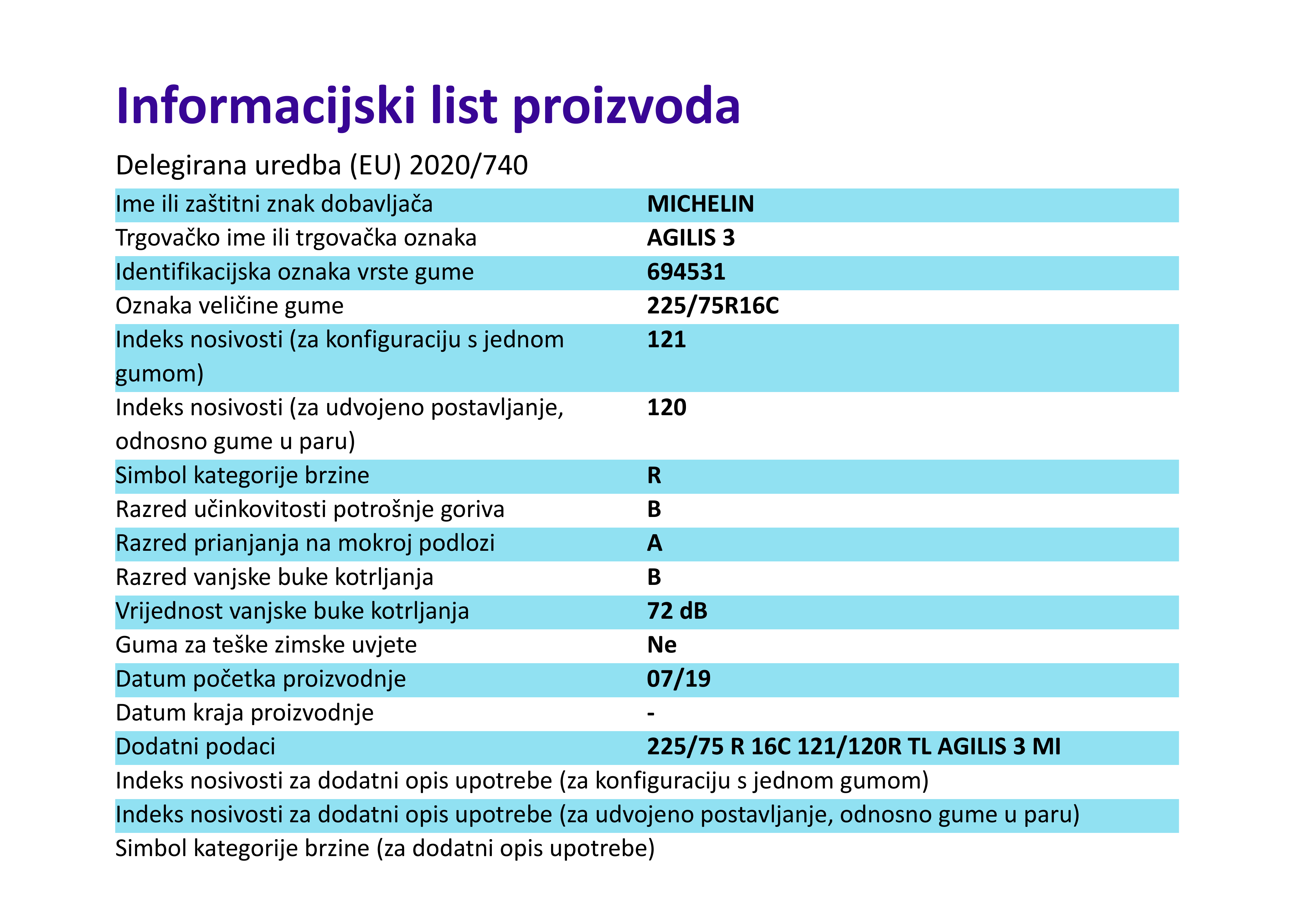 | Iskoristivost goriva | B |