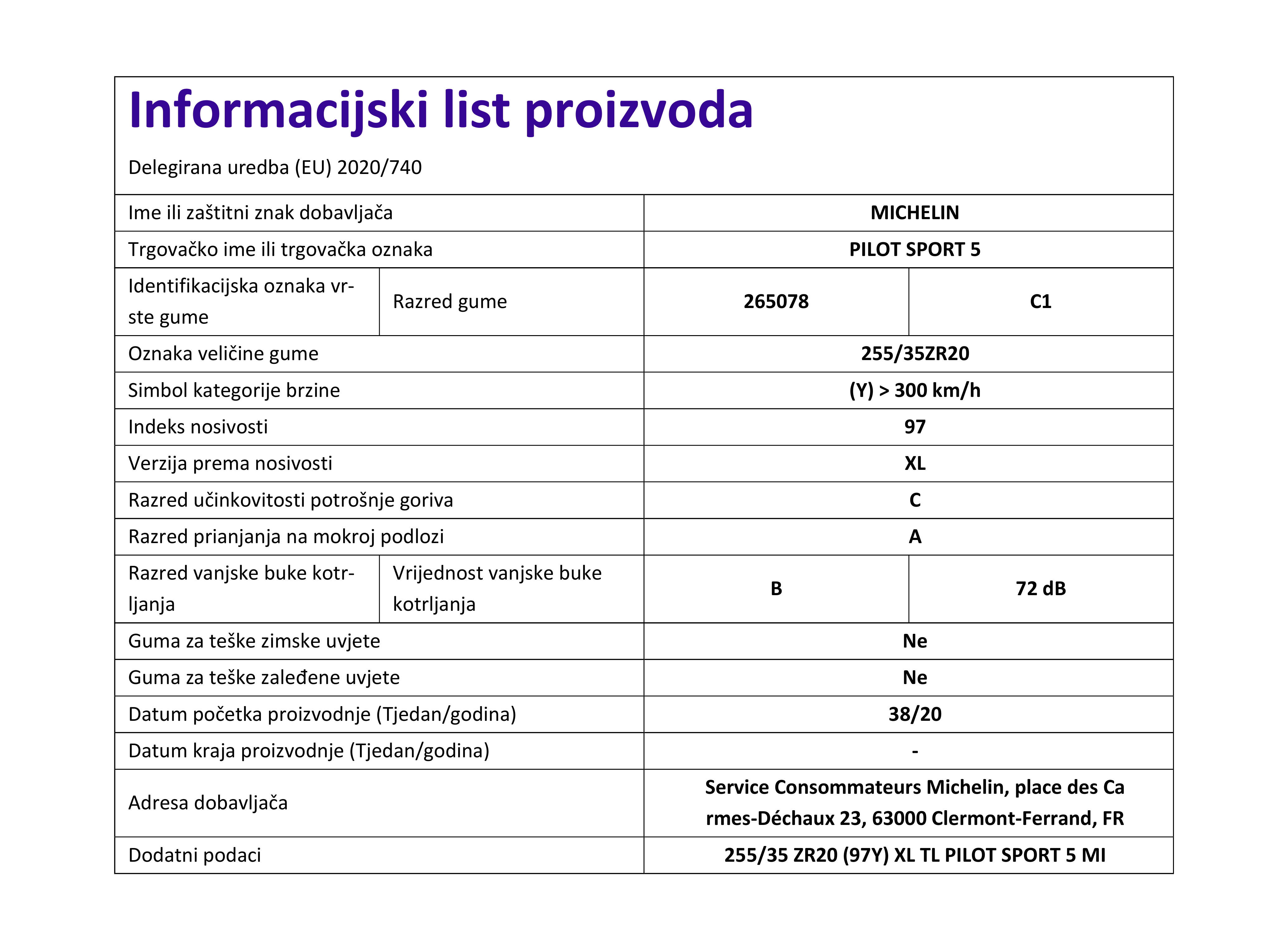 Ljetne gume michelin PILOT SPORT 5 255 / 35 R R20 97Y