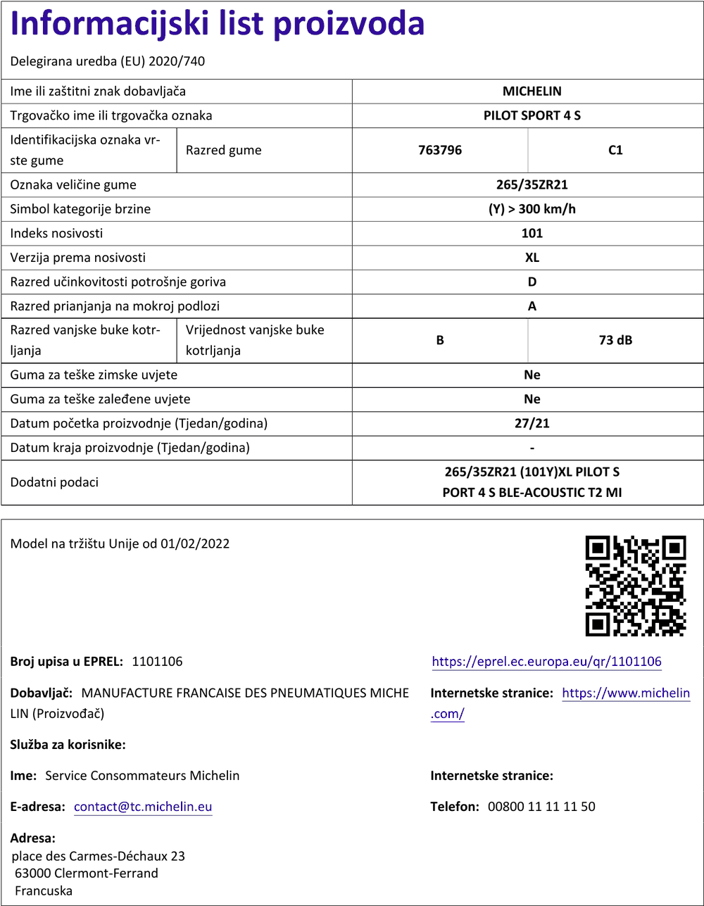 Ljetne gume michelin PILOT SPORT 4S 265 / 35 R R21 101Y