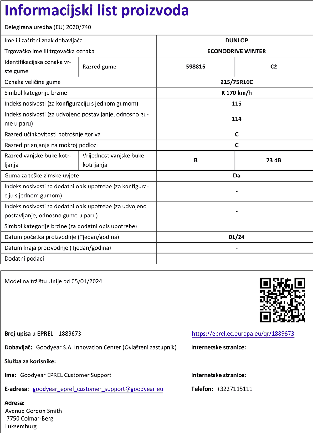 Zimske gume dunlop ECONODRIVE WINTER 215 / 75 R R16C 116R