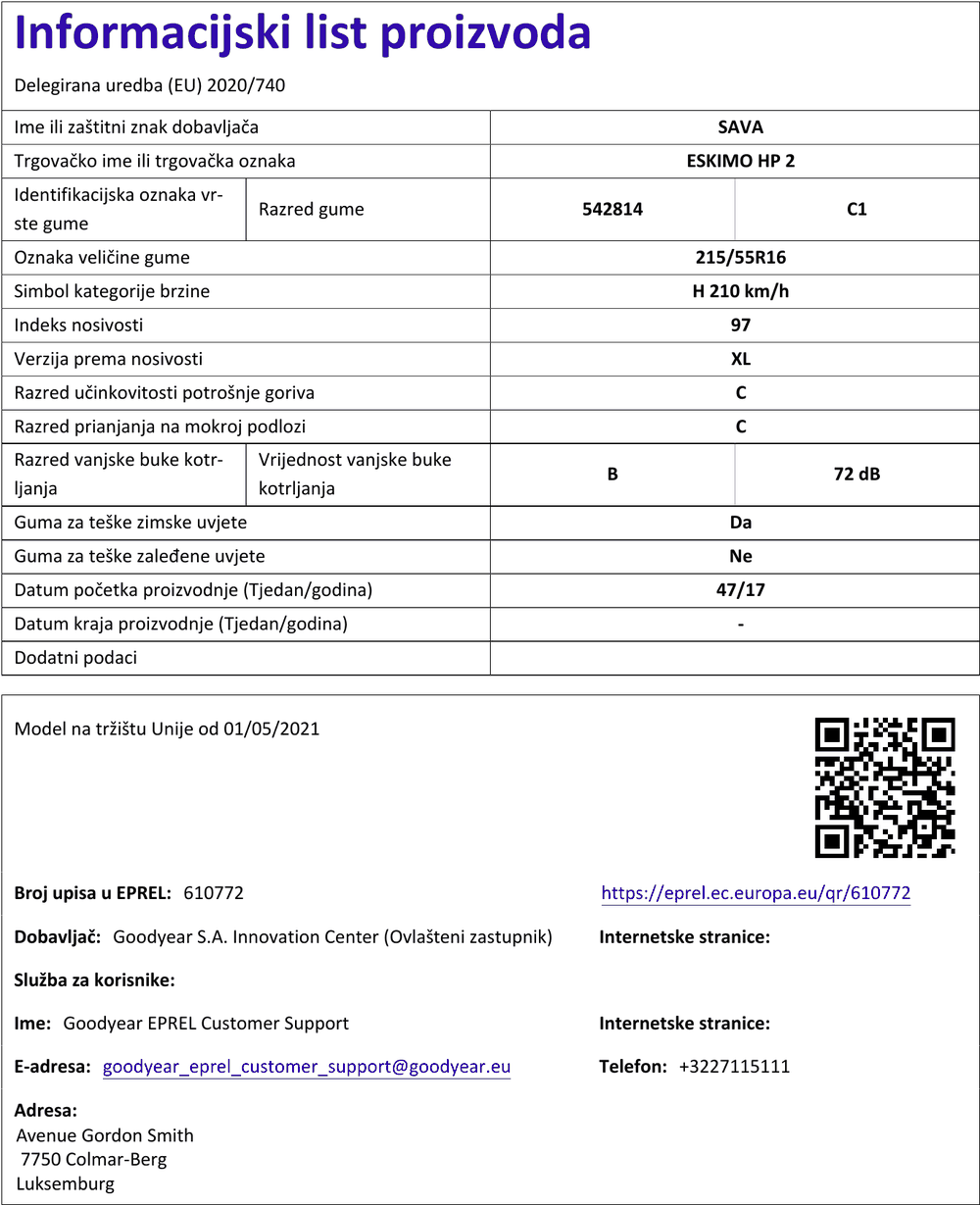 Zimske gume sava ESKIMO HP2 215 / 55 R R16 97H