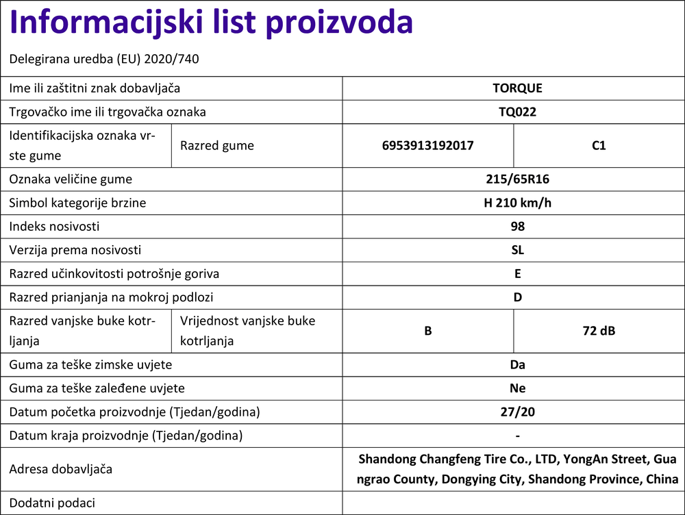 Zimske gume torque TORQUE TQ022 215 / 65 R R16 98H