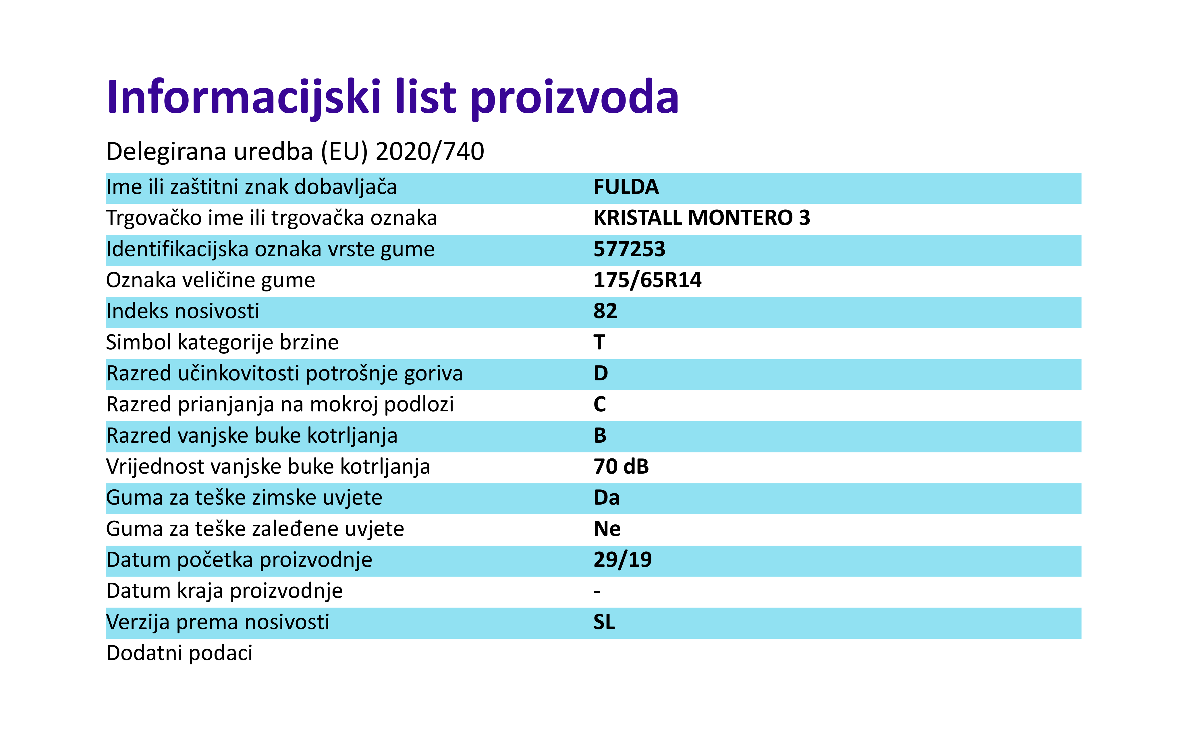 Zimske gume fulda KRISTALL MONTERO 3 175 / 65 R R14 82T