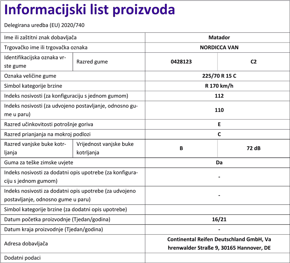 Zimske gume matador NORDICCA VAN 225 / 70 R R15C 112R