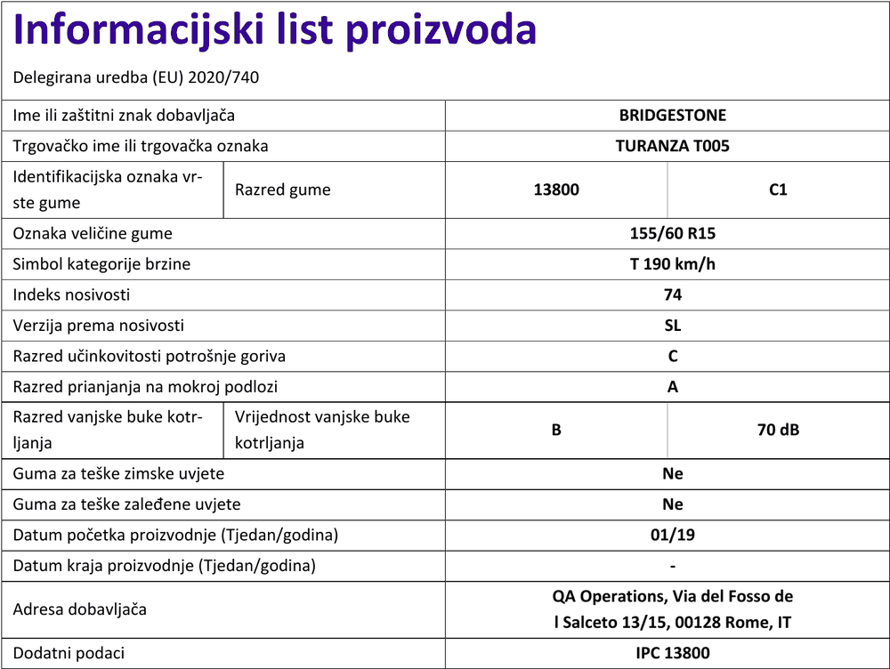 Ljetne gume bridgestone TURANZA T005 155 / 60 R R15 75T