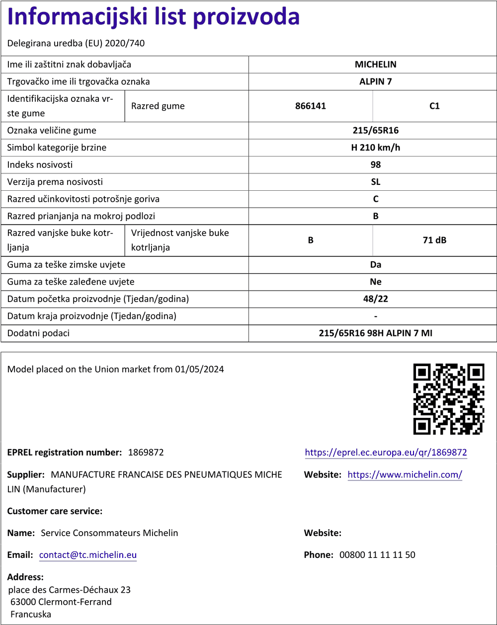 Zimske gume michelin ALPIN 7 215 / 65 R R16 98H
