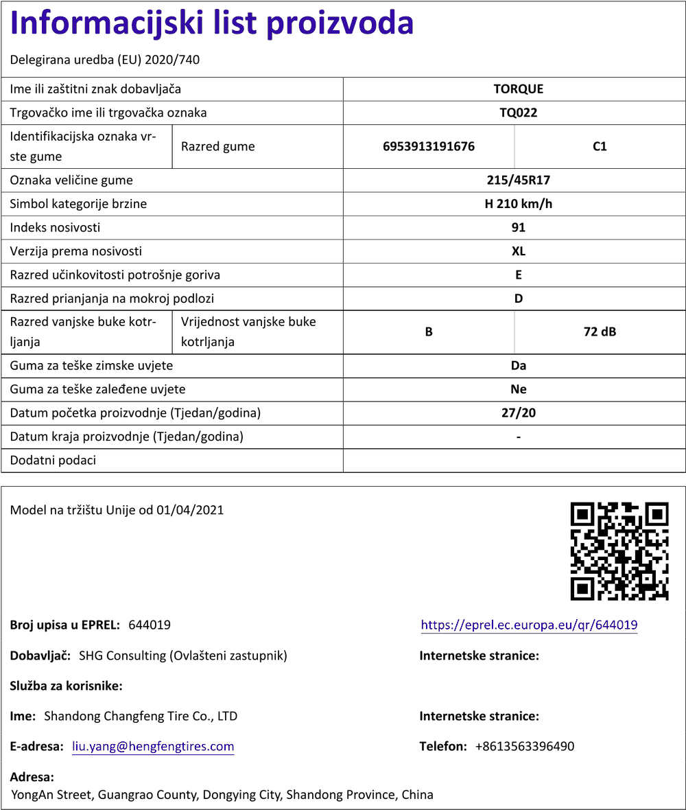 Zimske gume torque TORQUE TQ022 215 / 45 R R17 91H