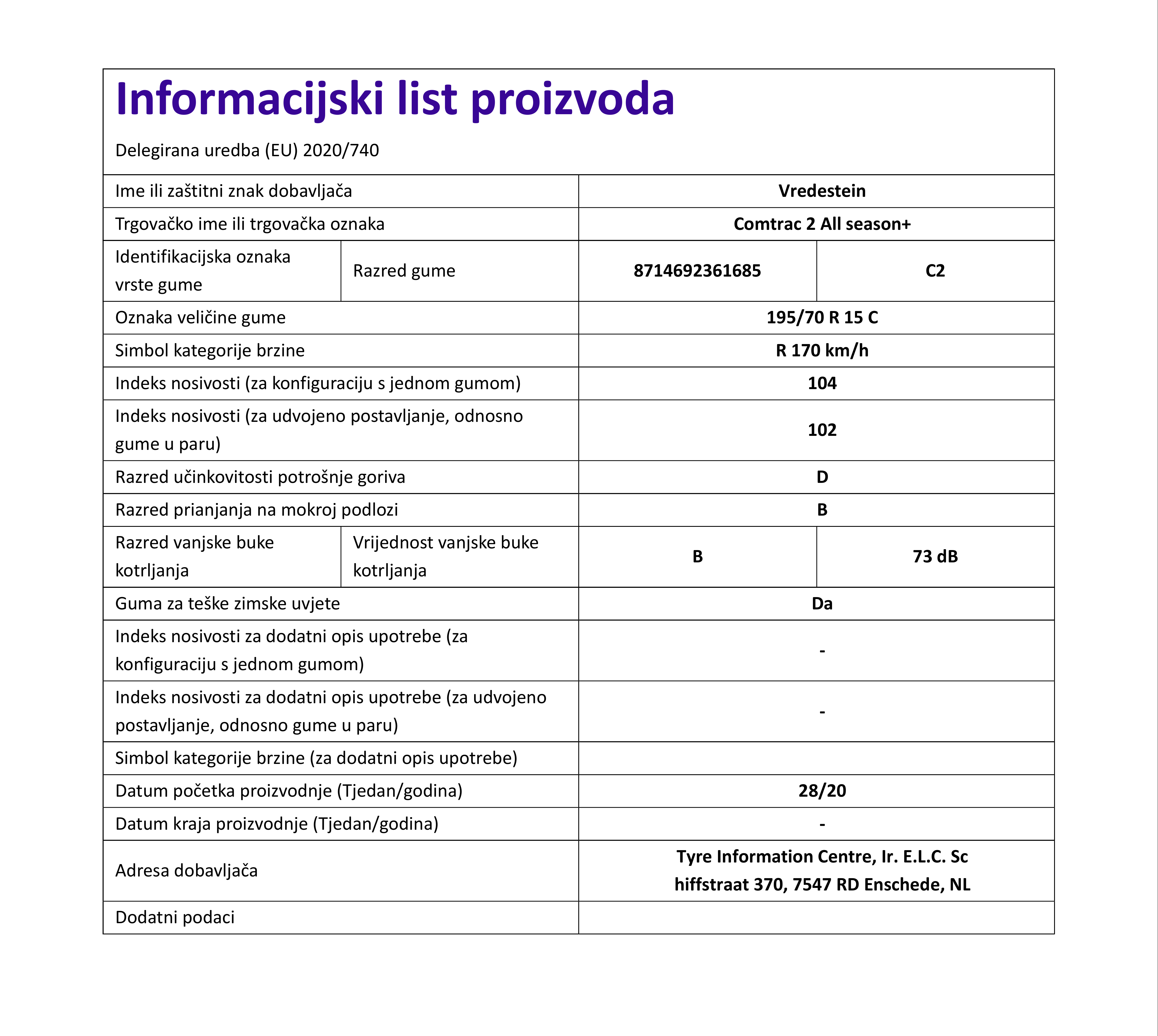 Vredestein Guma 195/70r15c 104/102r comtrac 2 as+ vredestein cjelogodisnje kombi i polu gume
