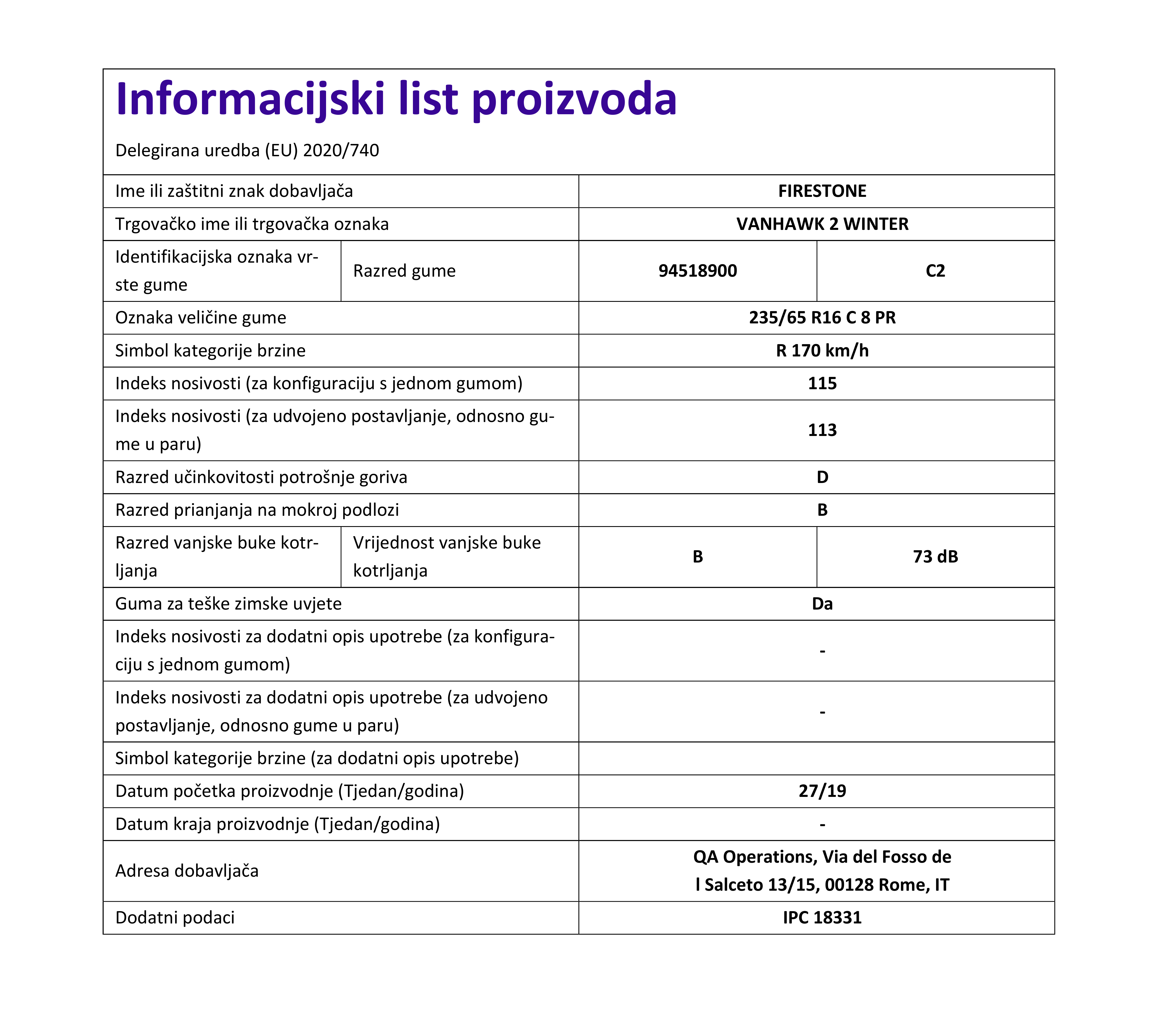 Zimske gume firestone VANHAWK 2 WINTER 235 / 65 R R16C 115R