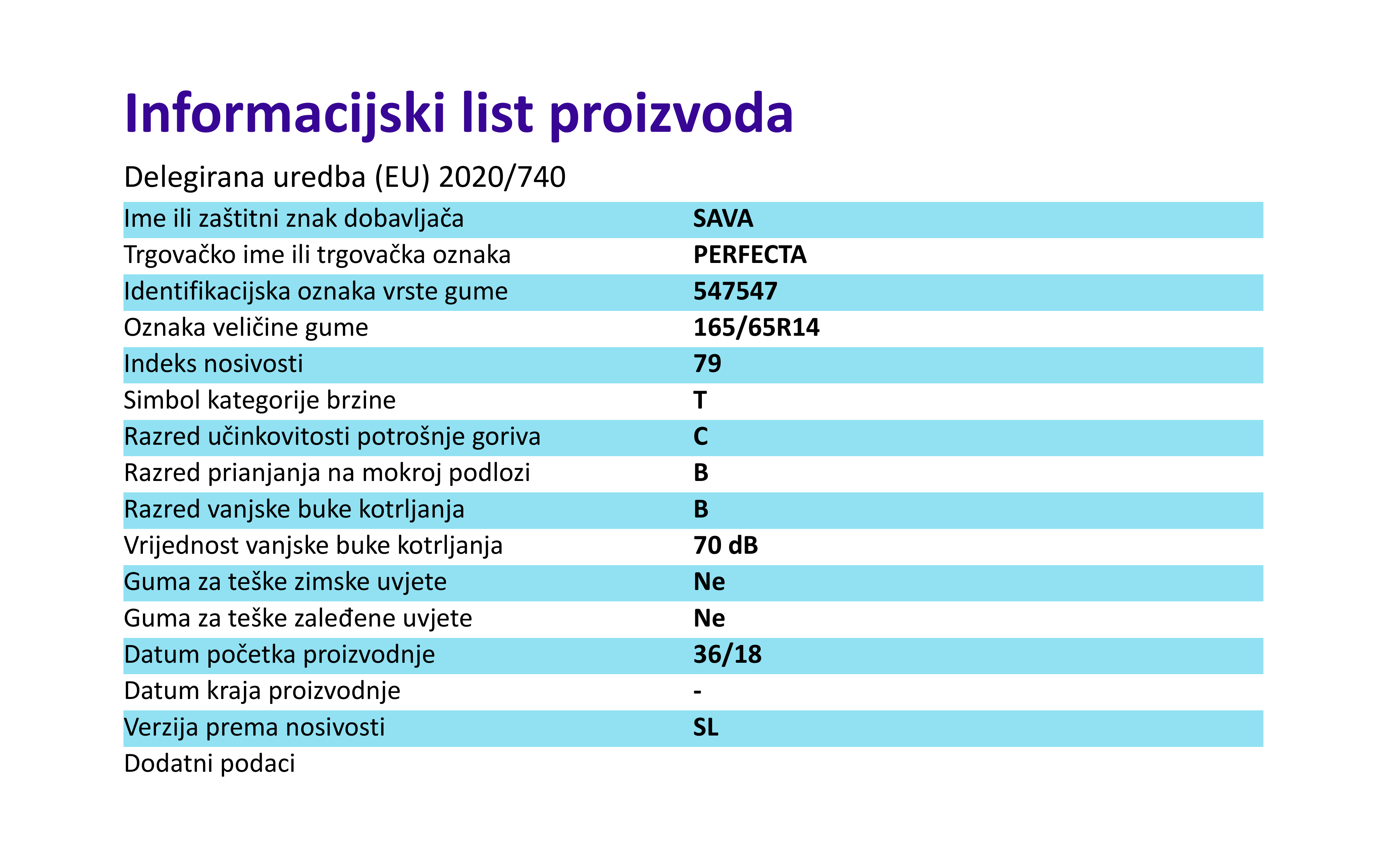 Ljetne gume sava PERFECTA 165 / 65 R R14 79T