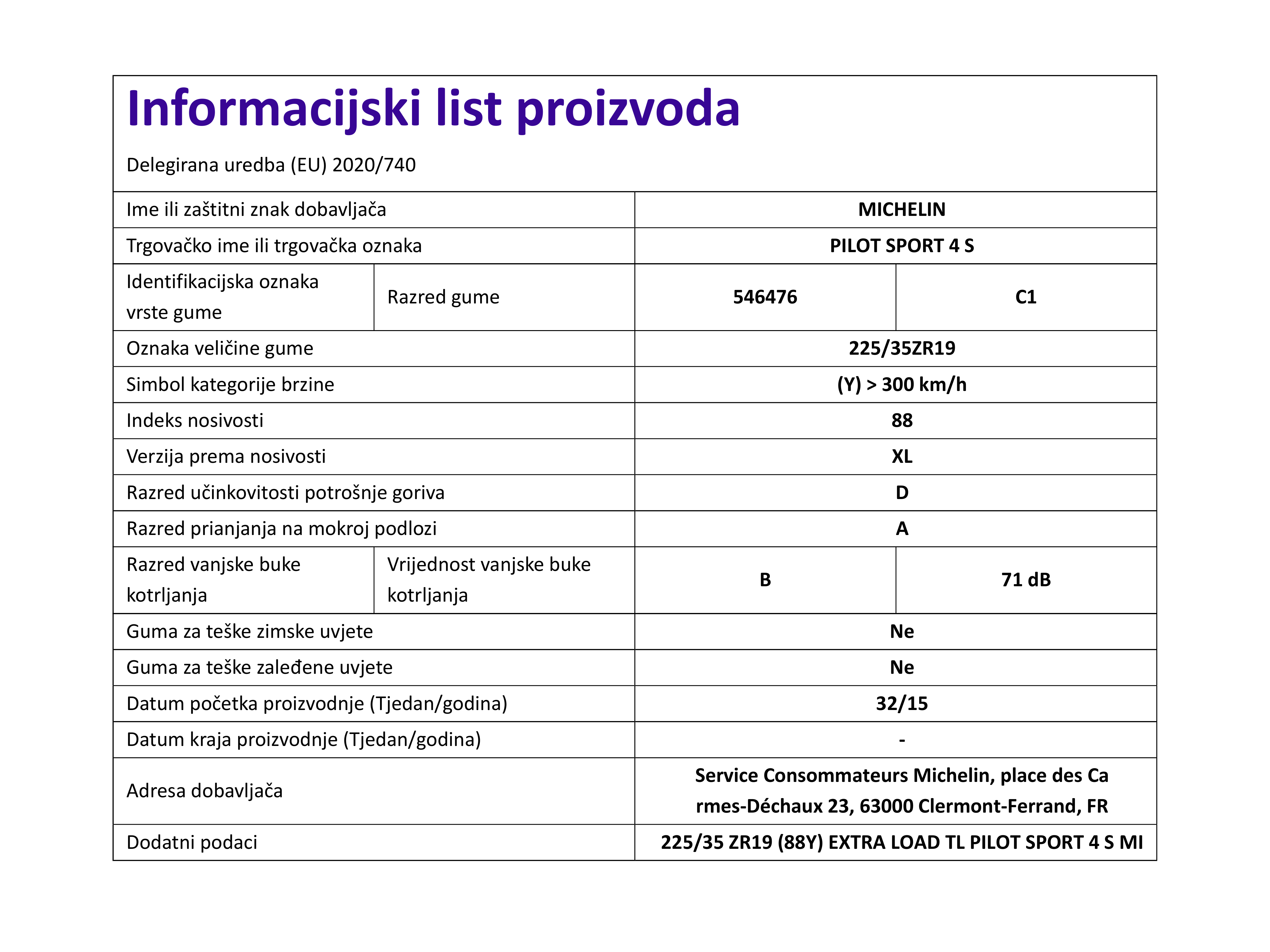 | Iskoristivost goriva | D |