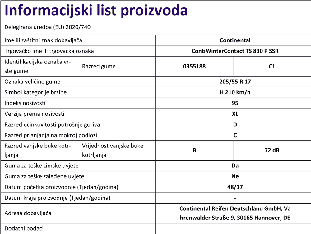 Zimske gume continental TS830 P SSR 205 / 55 R R17 95H