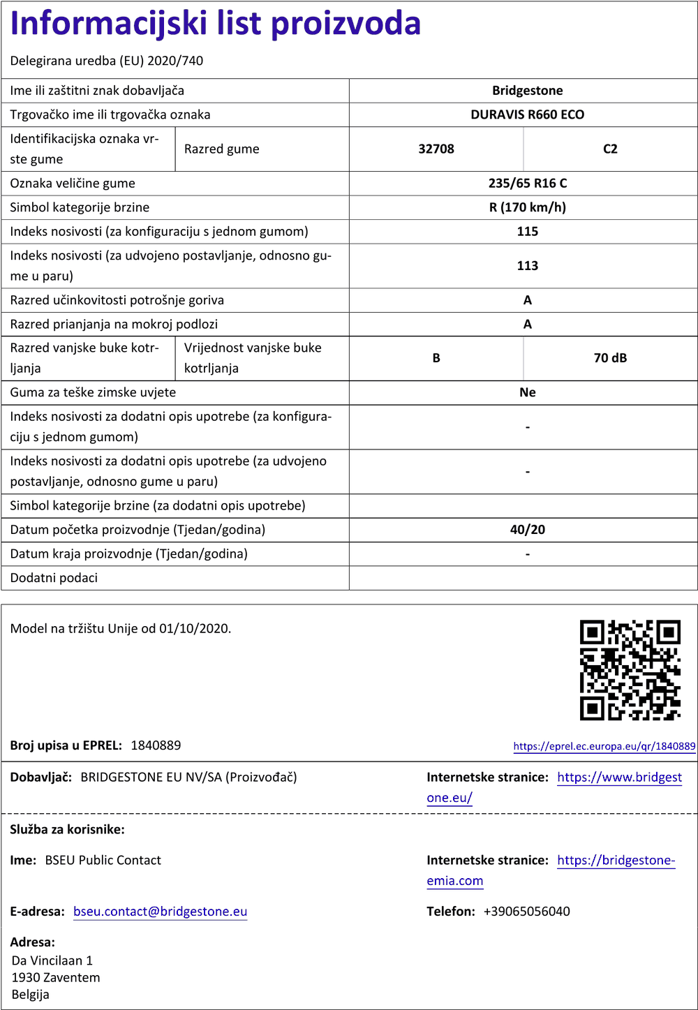 Ljetne gume bridgestone DURAVIS R660 ECO 235 / 65 R R16C 115/113R