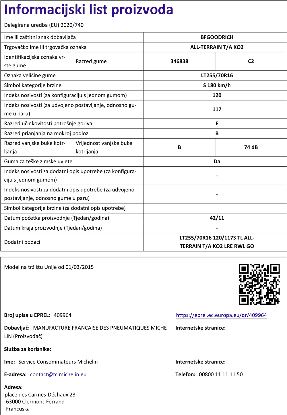 | Iskoristivost goriva | E |