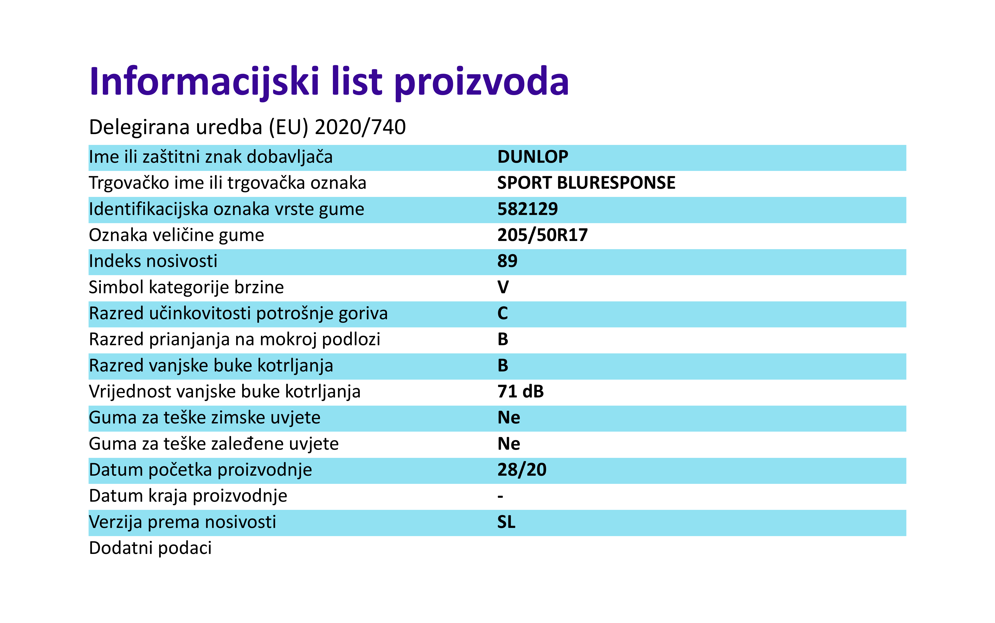Ljetne gume dunlop SPT BLURESPONSE 205 / 50 R R17 89V
