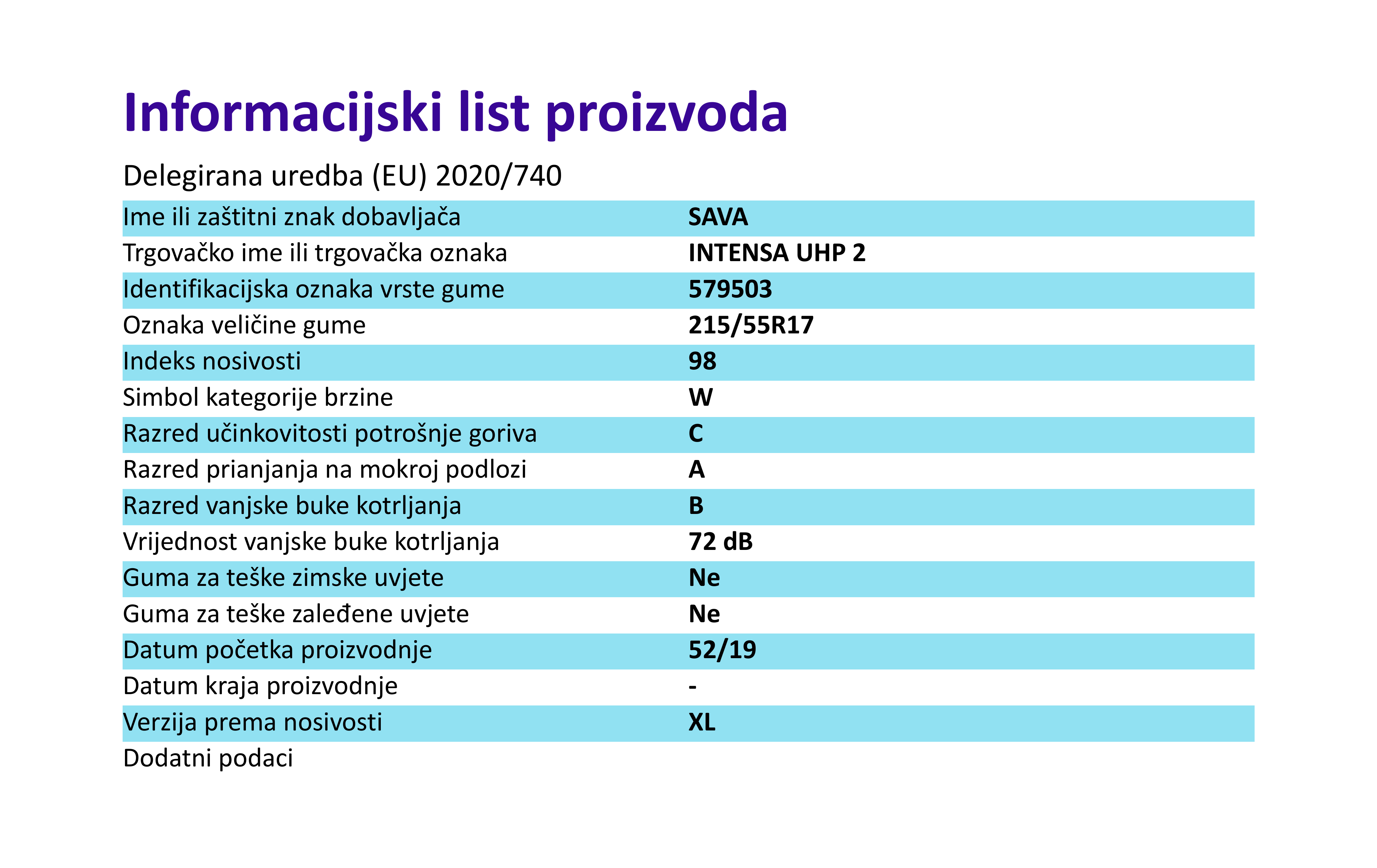 | Iskoristivost goriva | C |