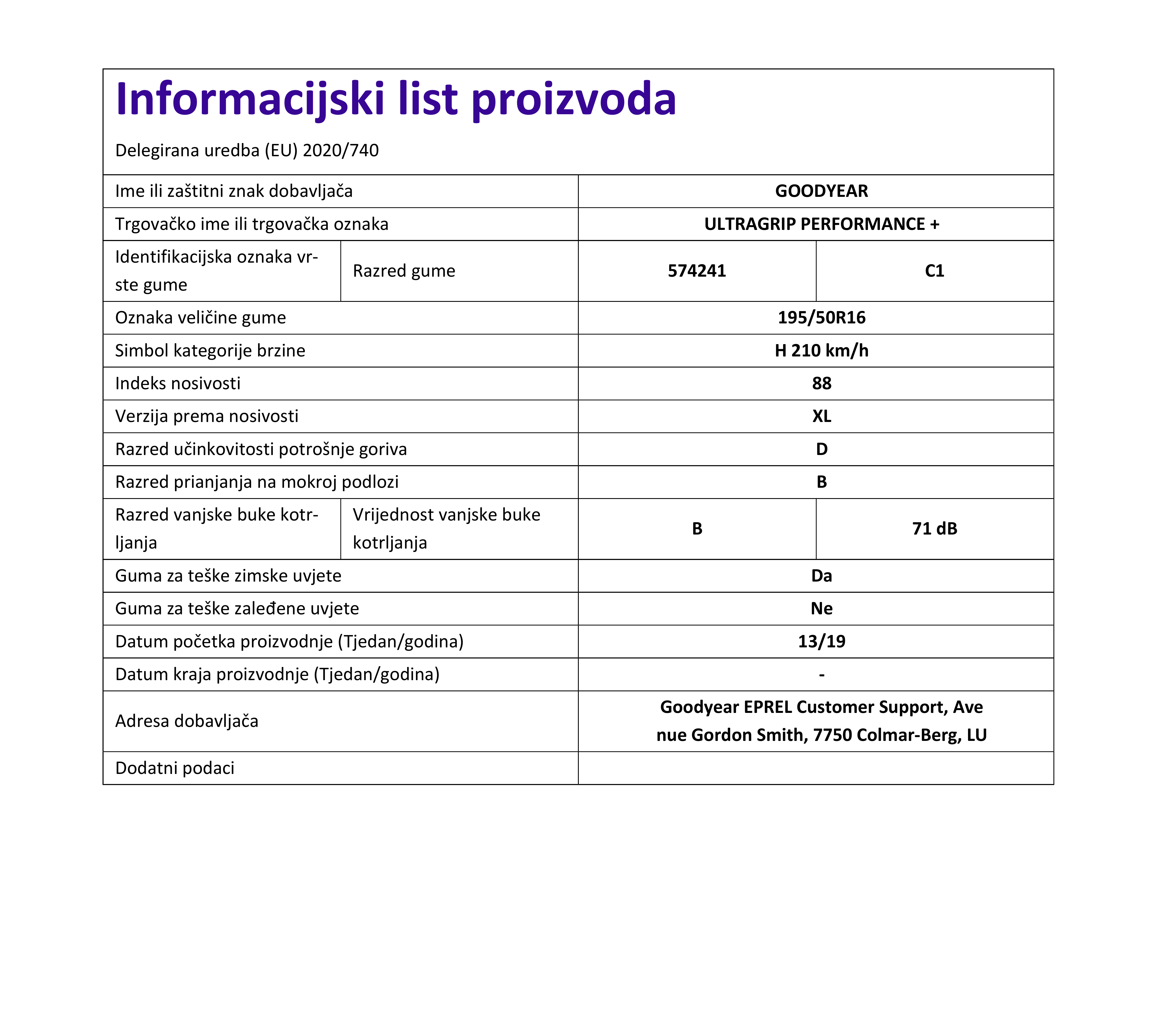 Zimske gume goodyear UG PERF+ 195 / 50 R R16 88H