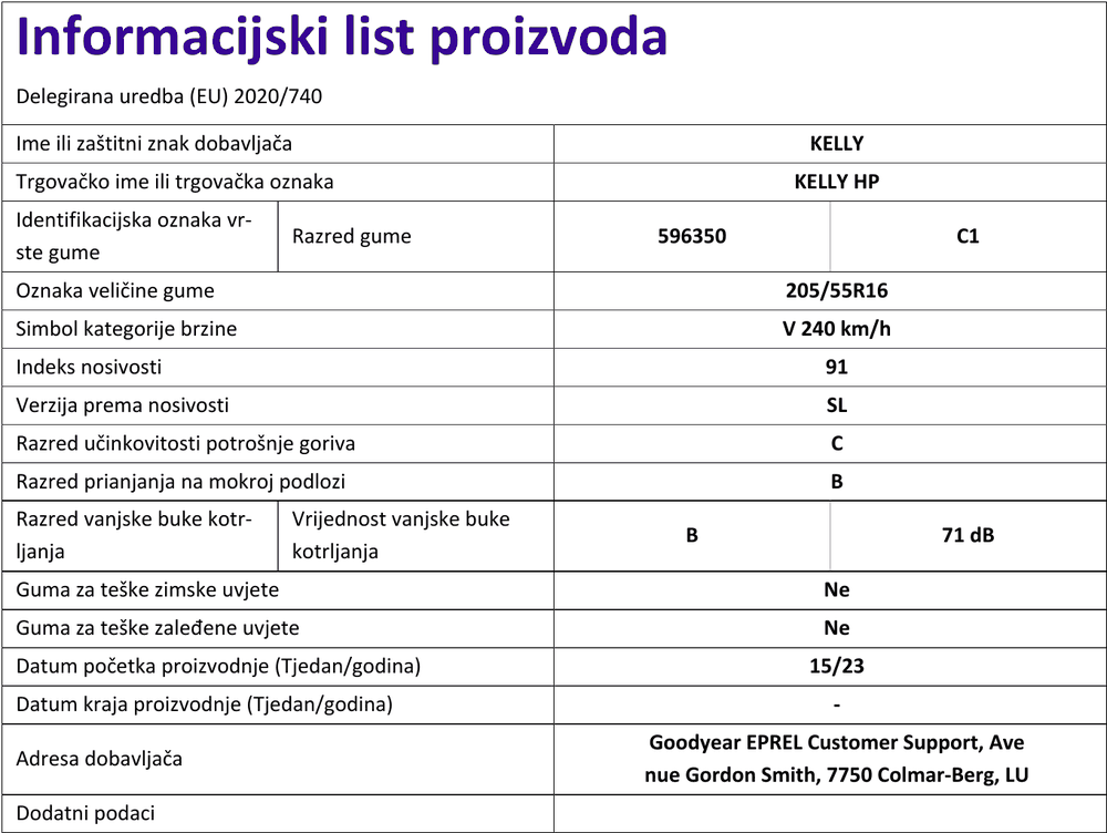 Ljetne gume kelly KELLY HP 205 / 55 R R16 91V