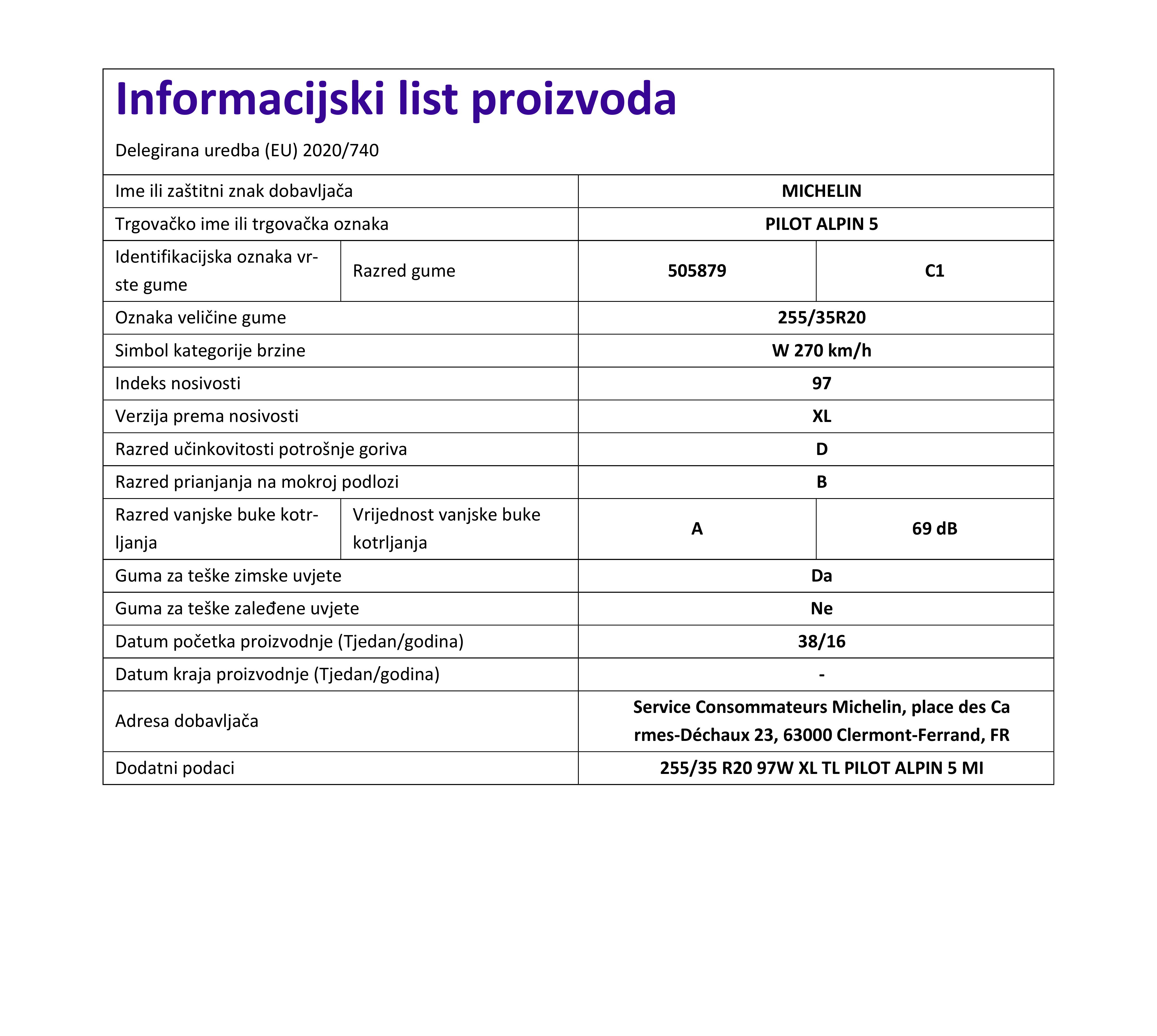 | Iskoristivost goriva | D |