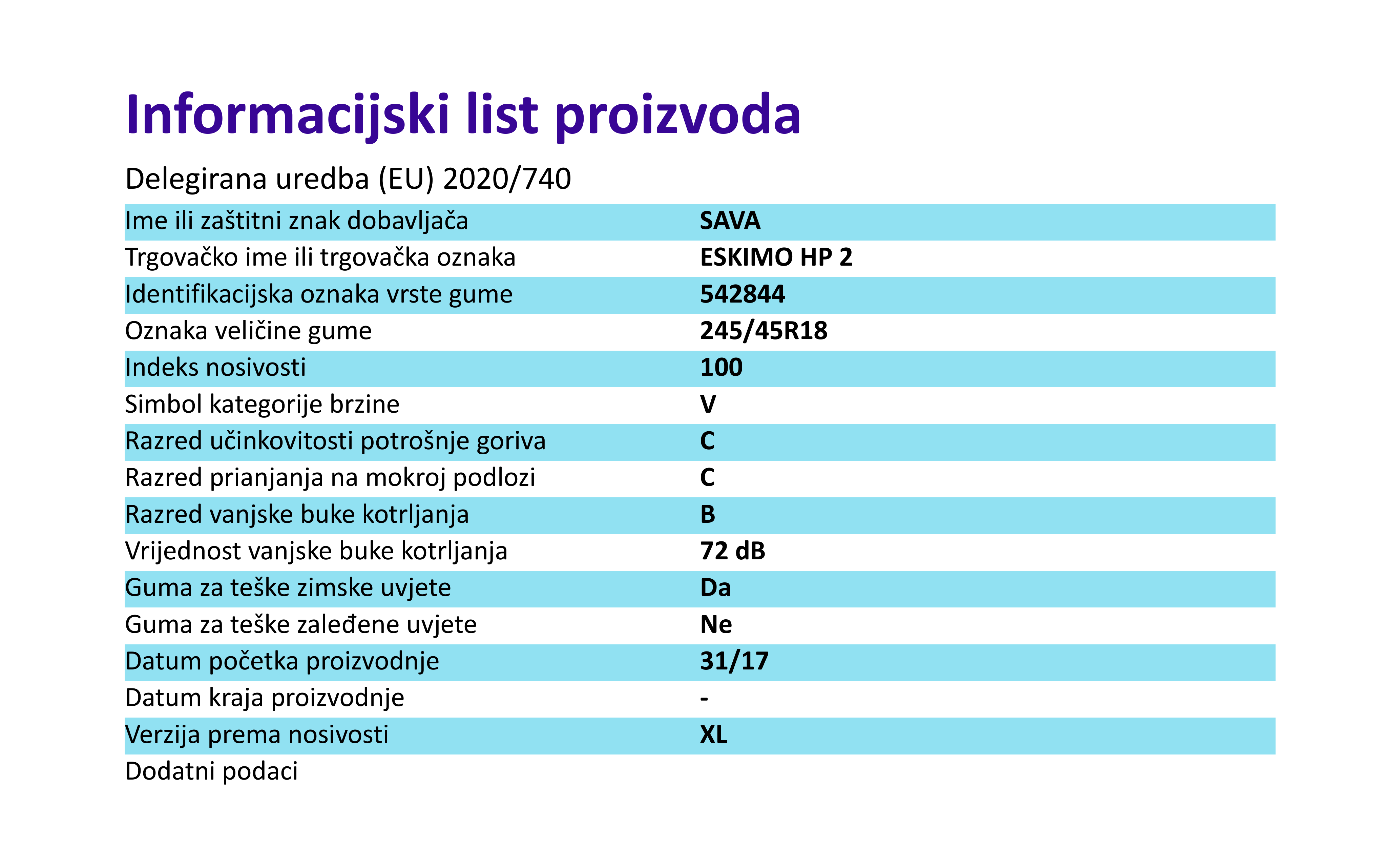 Zimske gume sava ESKIMO HP2 245 / 45 R R18 100V