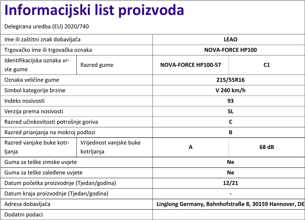 Ljetne gume leao NOVA-FORCE HP100 215 / 55 R R16 93V
