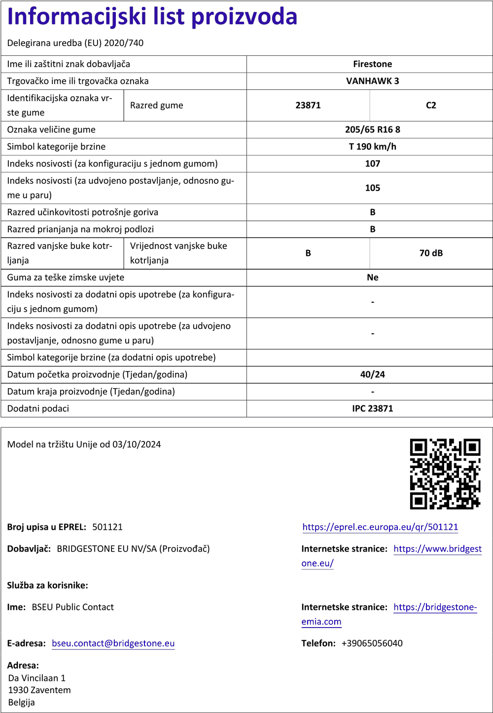 | Iskoristivost goriva | B |