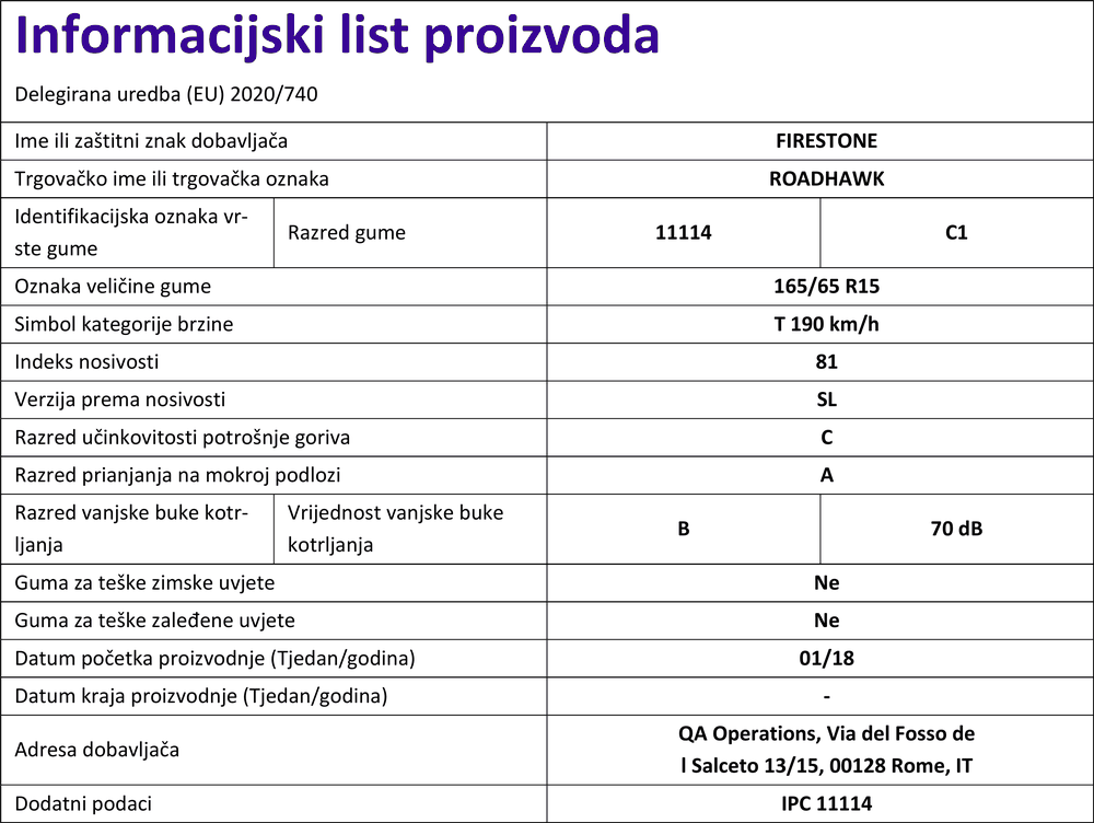 Ljetne gume firestone ROADHAWK 165 / 65 R R15 81T