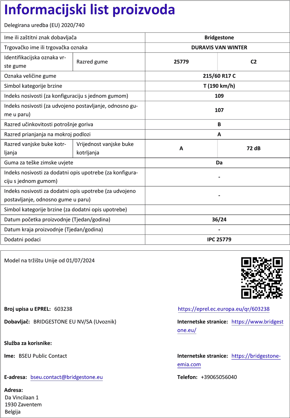 Zimske gume bridgestone DURAVIS VAN WINTER ENLITEN 215 / 60 R R17C 109T