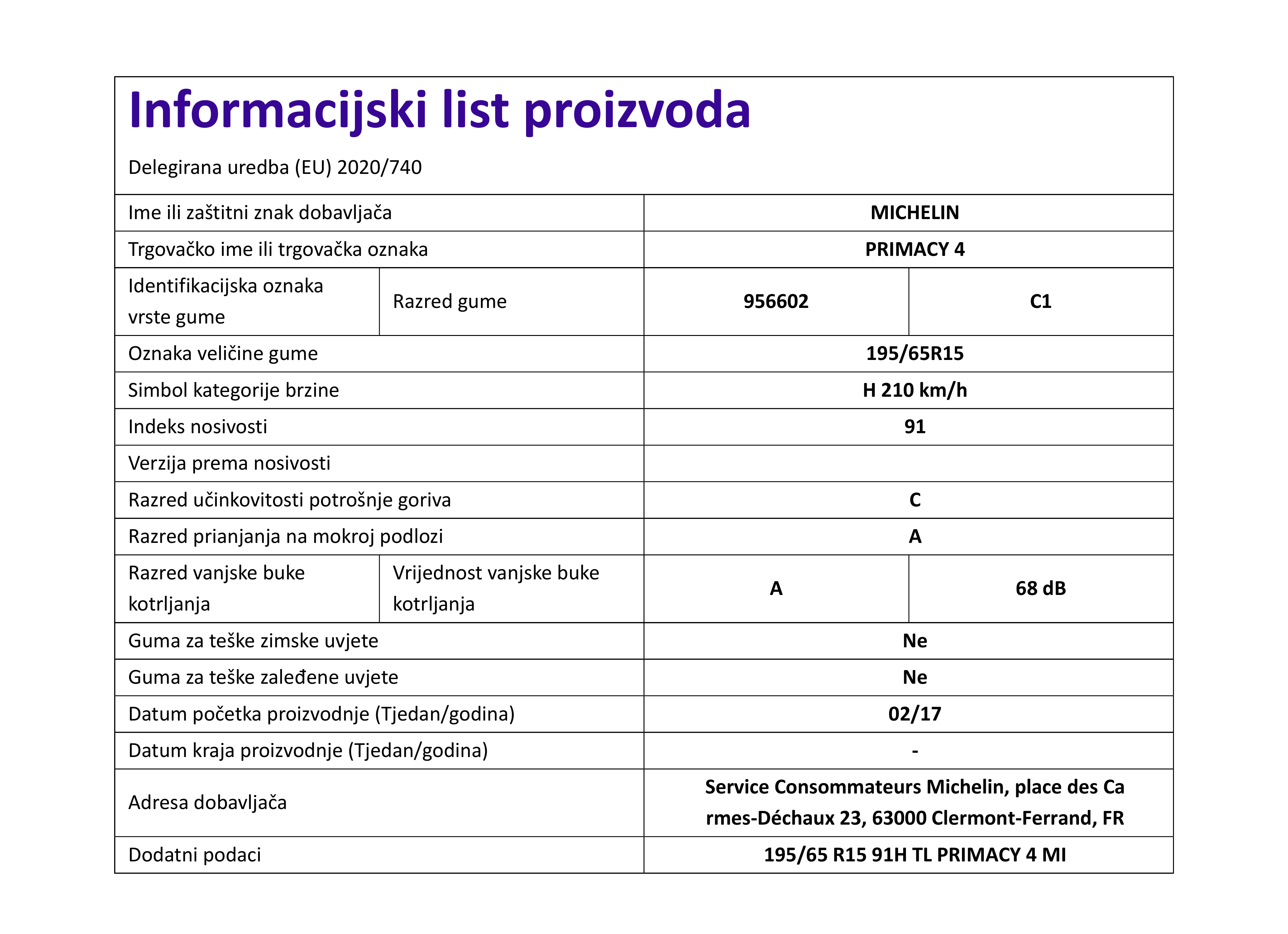 | Iskoristivost goriva | C |