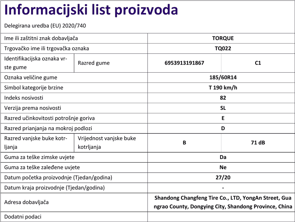 Zimske gume torque TORQUE TQ022 185 / 60 R R14 82T