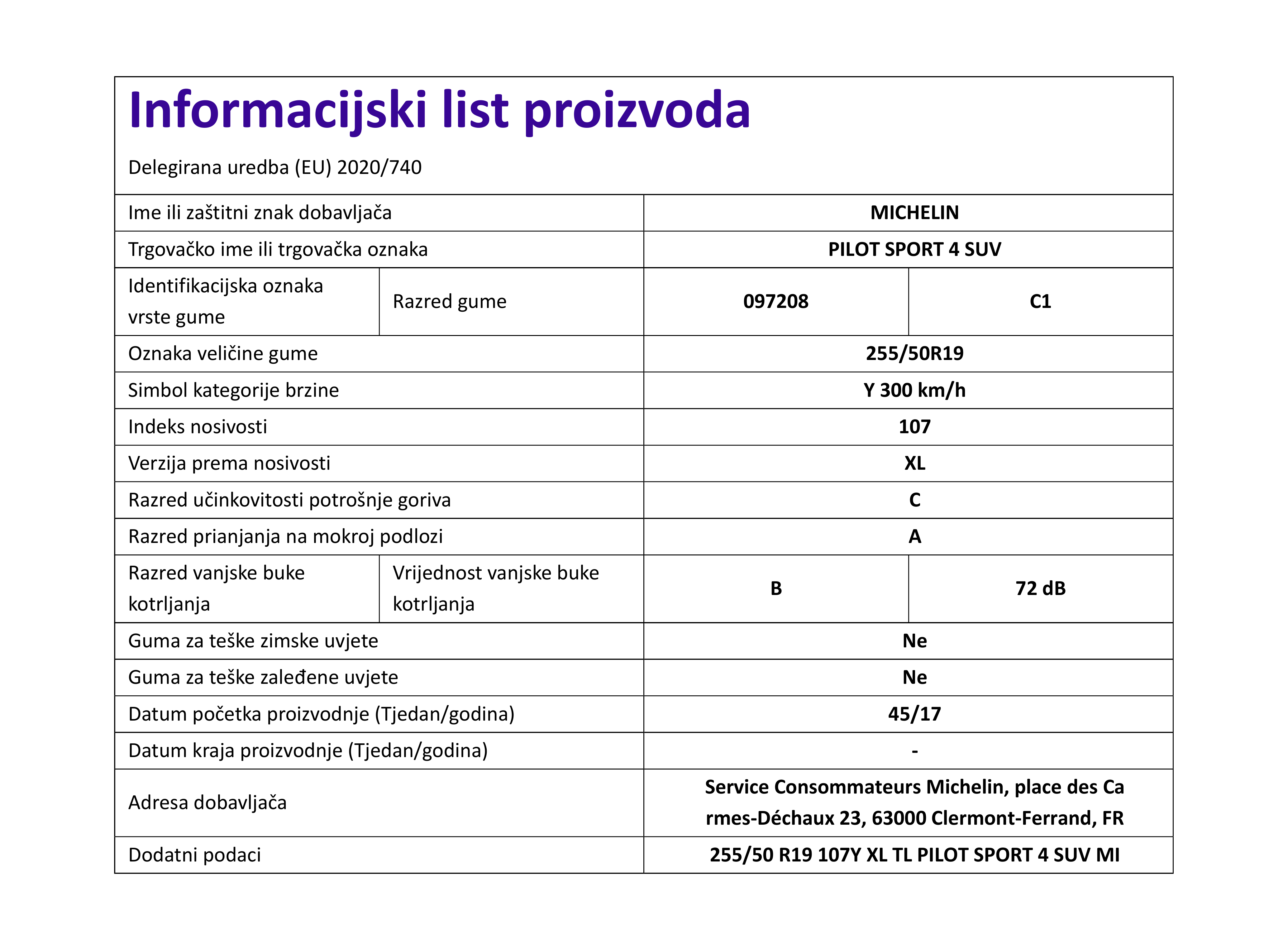 | Iskoristivost goriva | C |
