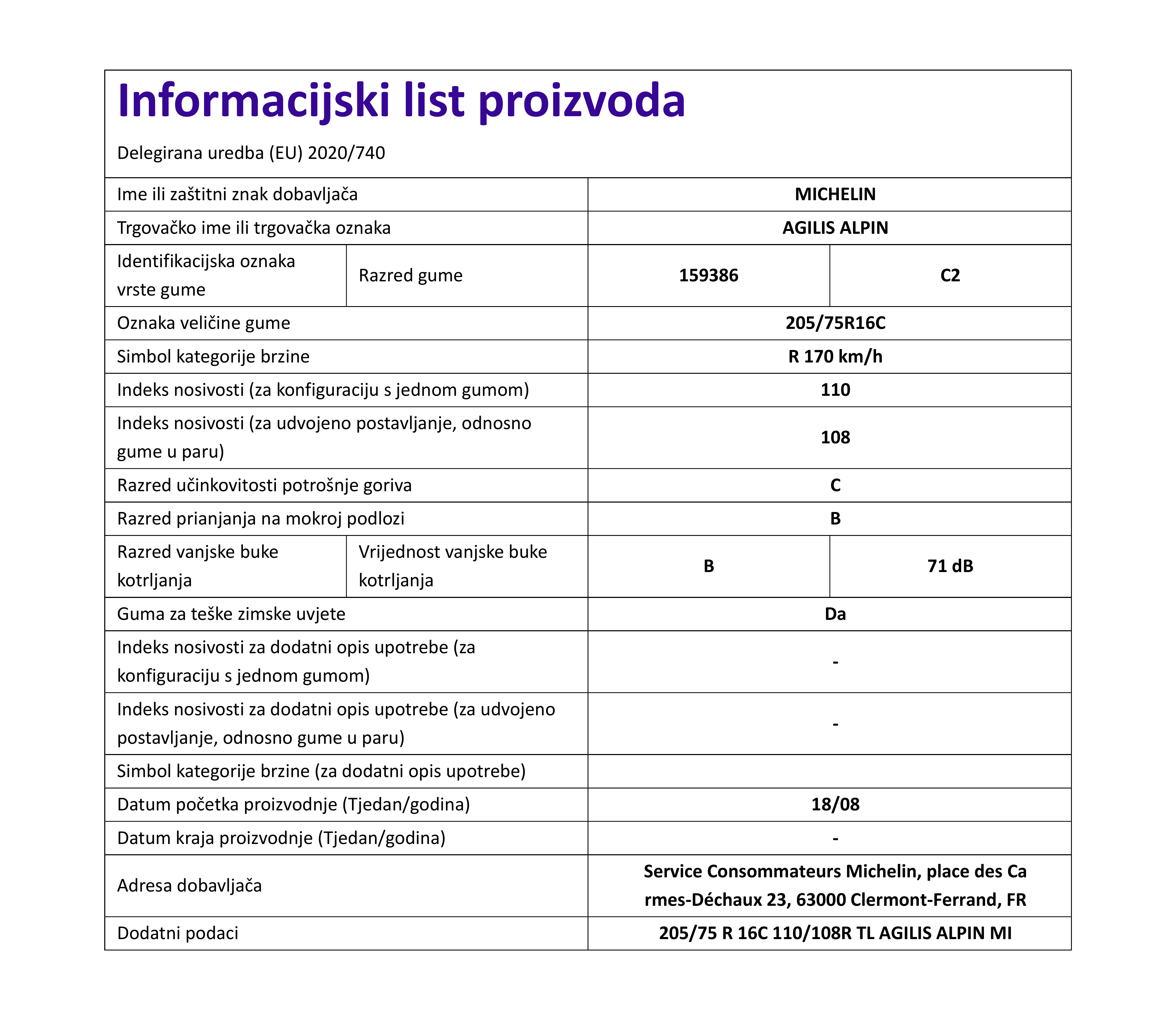 Zimske gume michelin AGILIS ALPIN 205 / 75 R R16C 110R