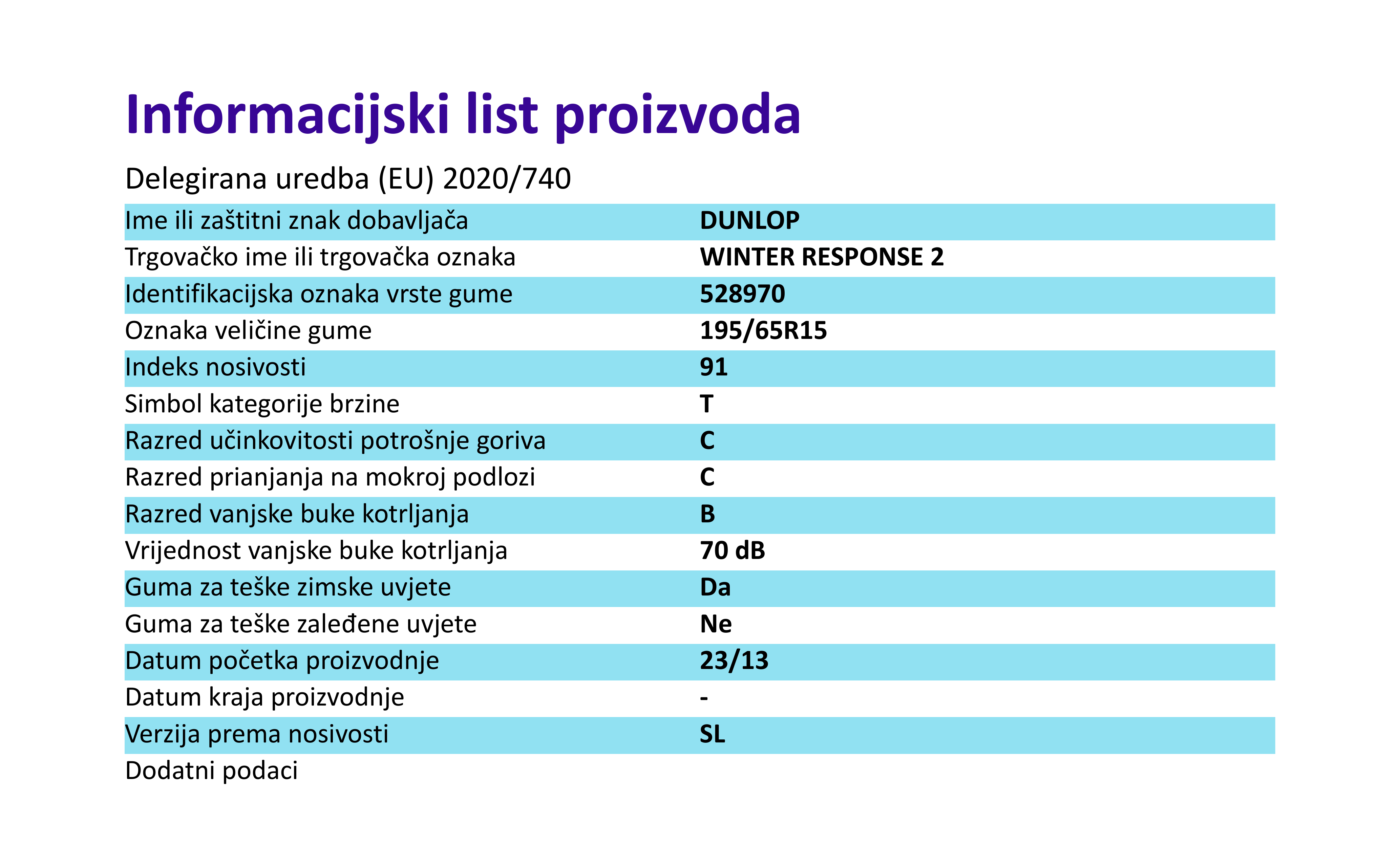 Zimske gume dunlop WINTER RESPONSE 2 195 / 65 R R15 91T