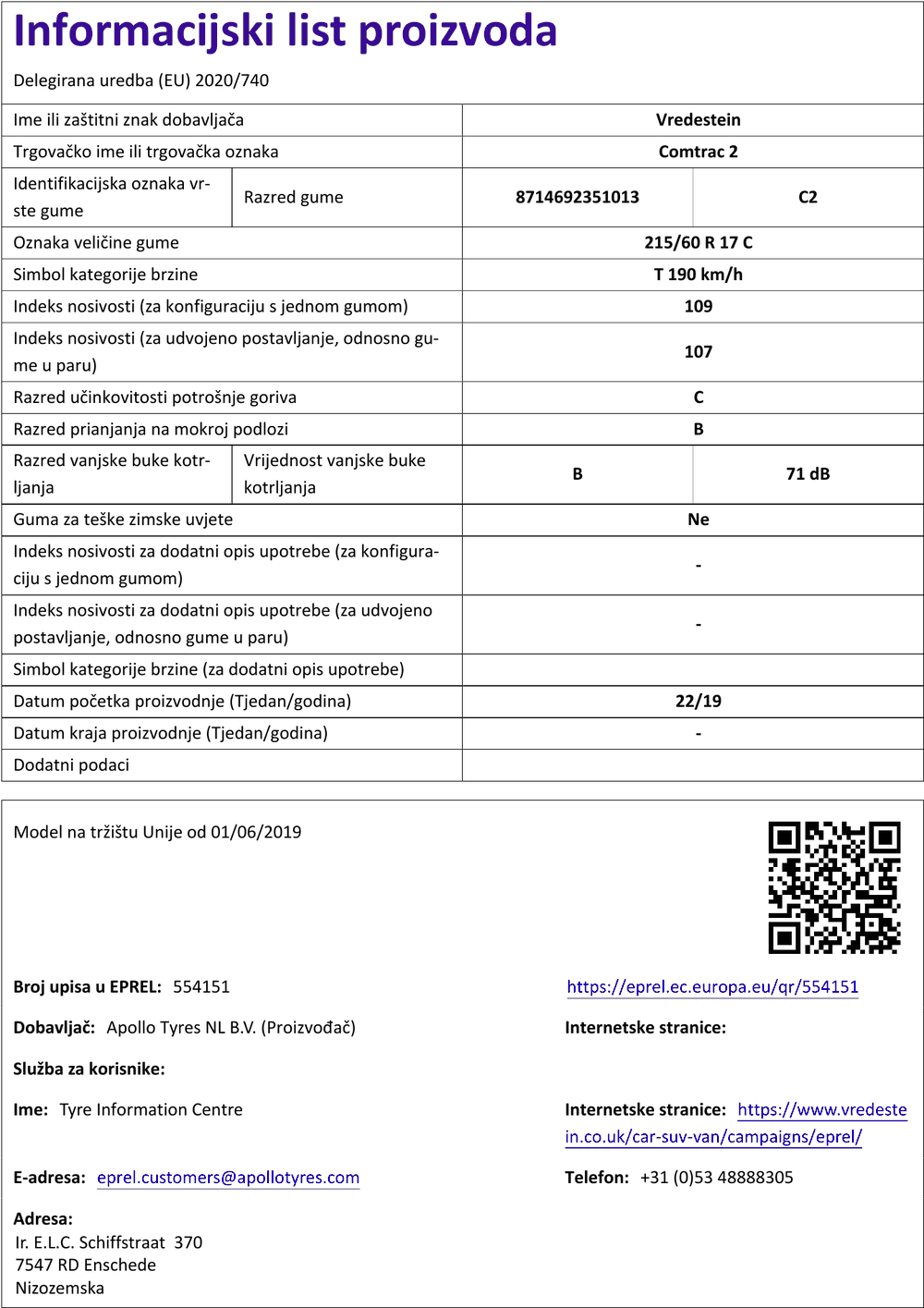 Ljetne gume vredestein COMTRAC 2 215 / 60 R R17C 109T