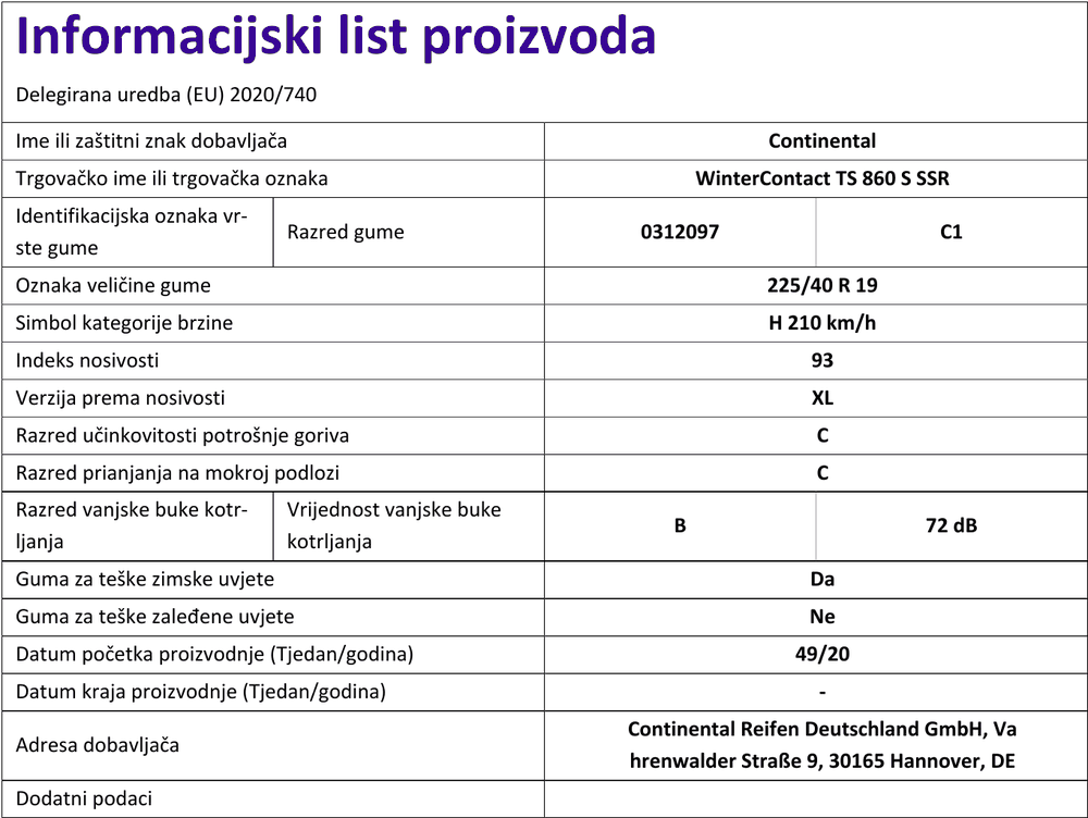 Zimske gume continental TS860 S 225 / 40 R R19 93H
