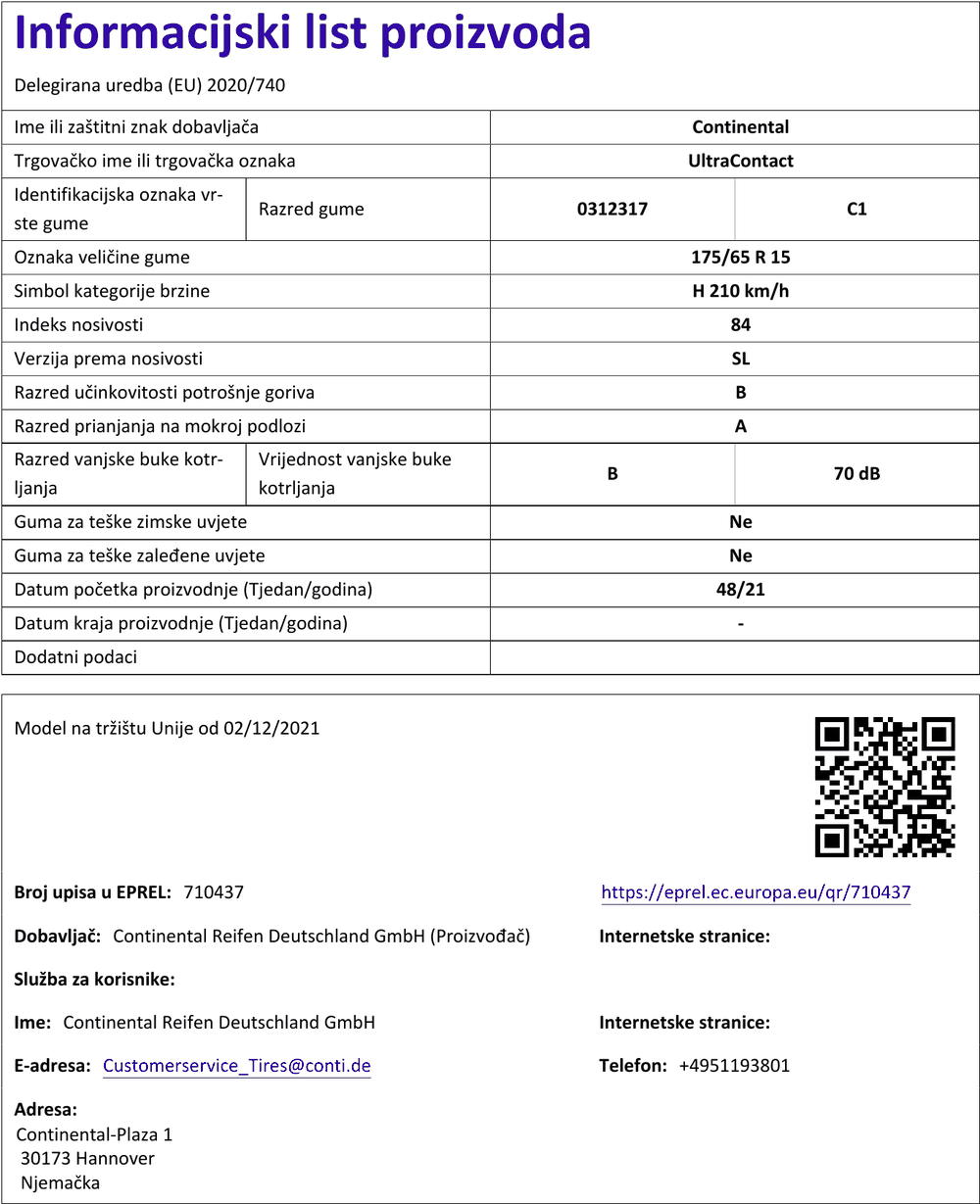 Ljetne gume continental ULTRACONTACT 175 / 65 R R15 84H