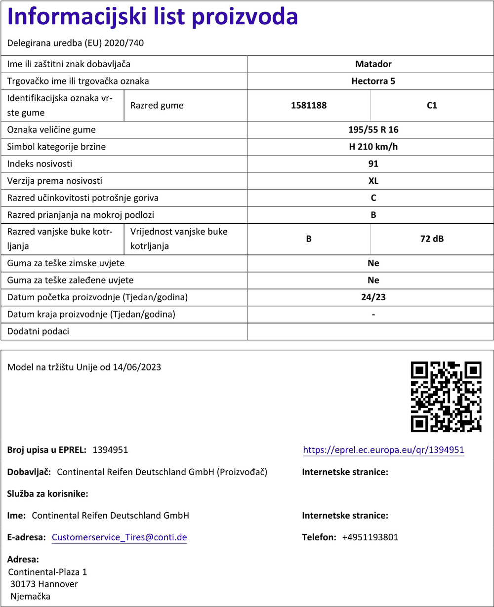 Ljetne gume matador HECTORRA 5 195 / 55 R R16 91H