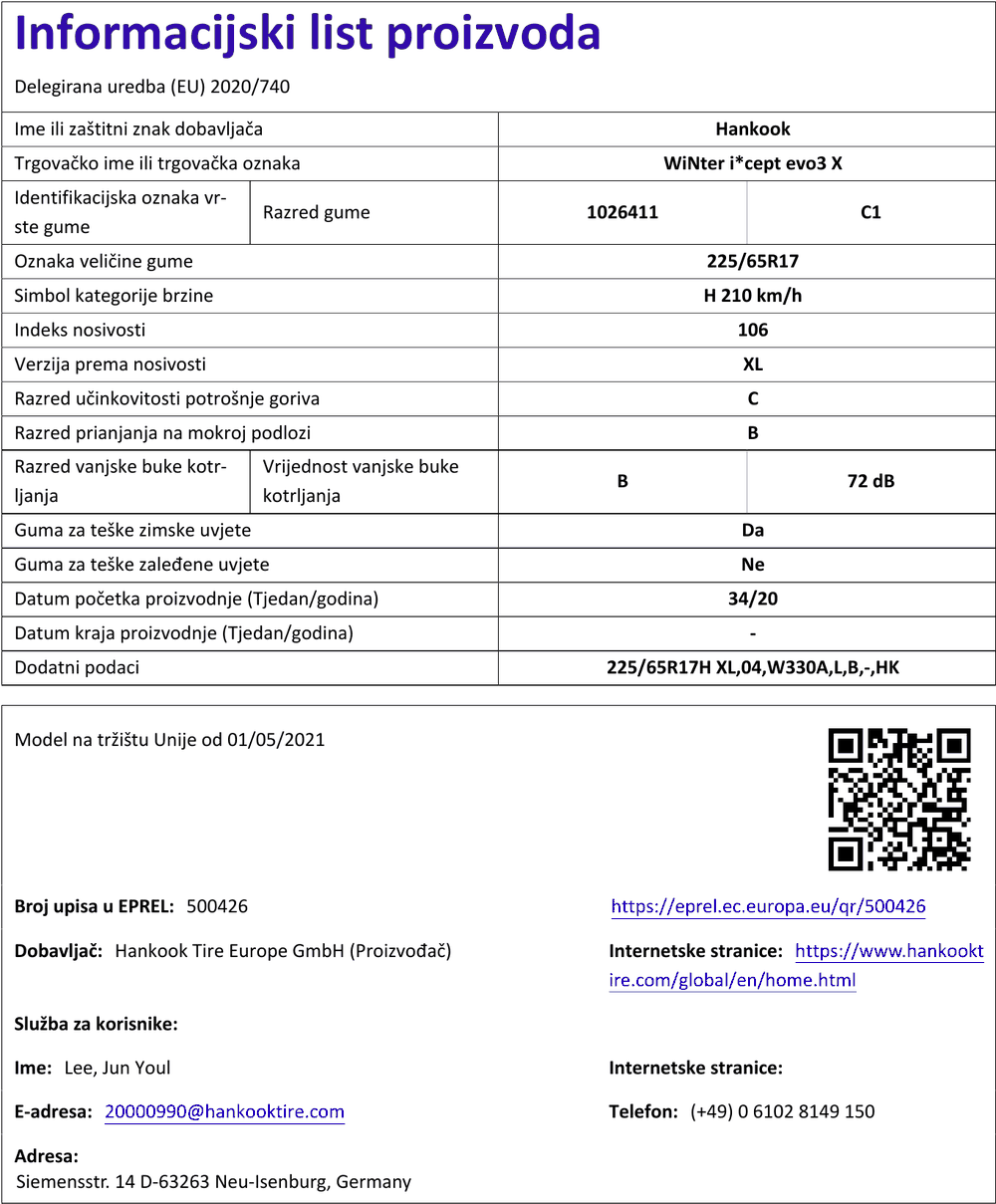 Zimske gume hankook WINTER ICEPT EVO 3 W330A 225 / 65 R R17 106H