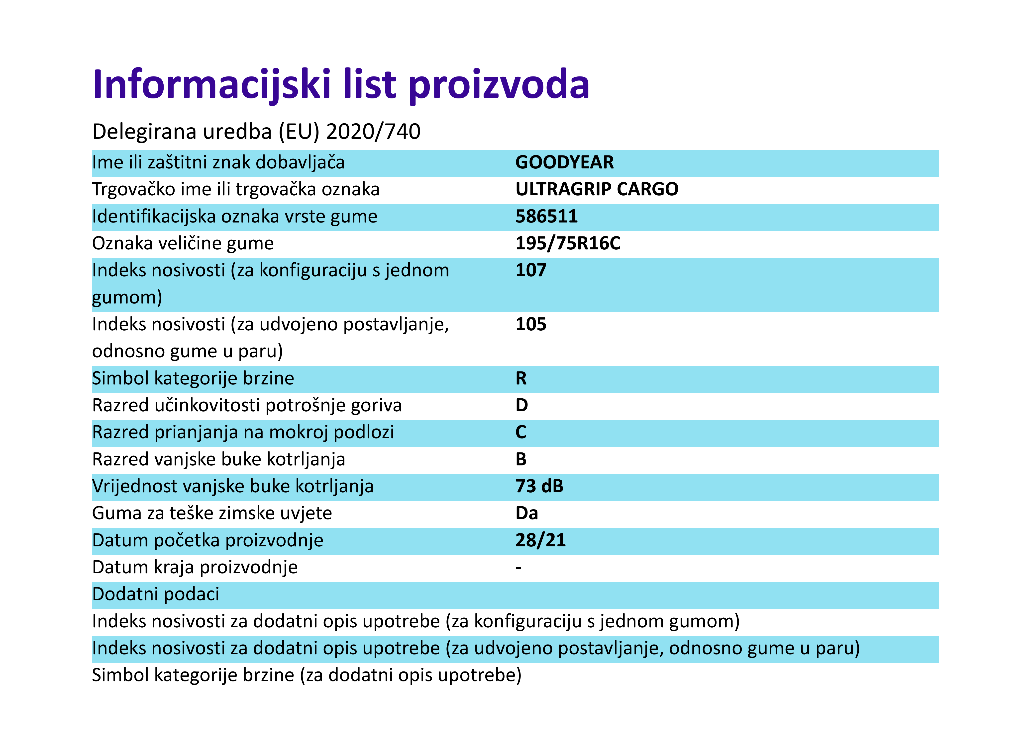 Zimske gume goodyear UG CARGO 195 / 75 R R16C 107R
