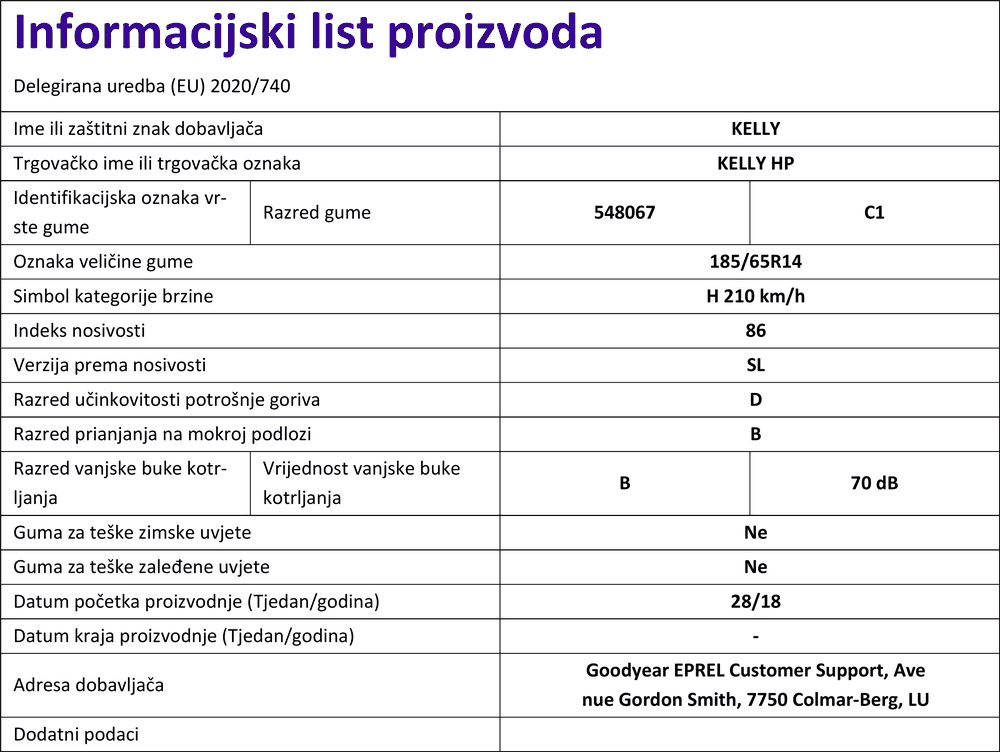 Ljetne gume kelly KELLY HP 185 / 65 R R14 86H