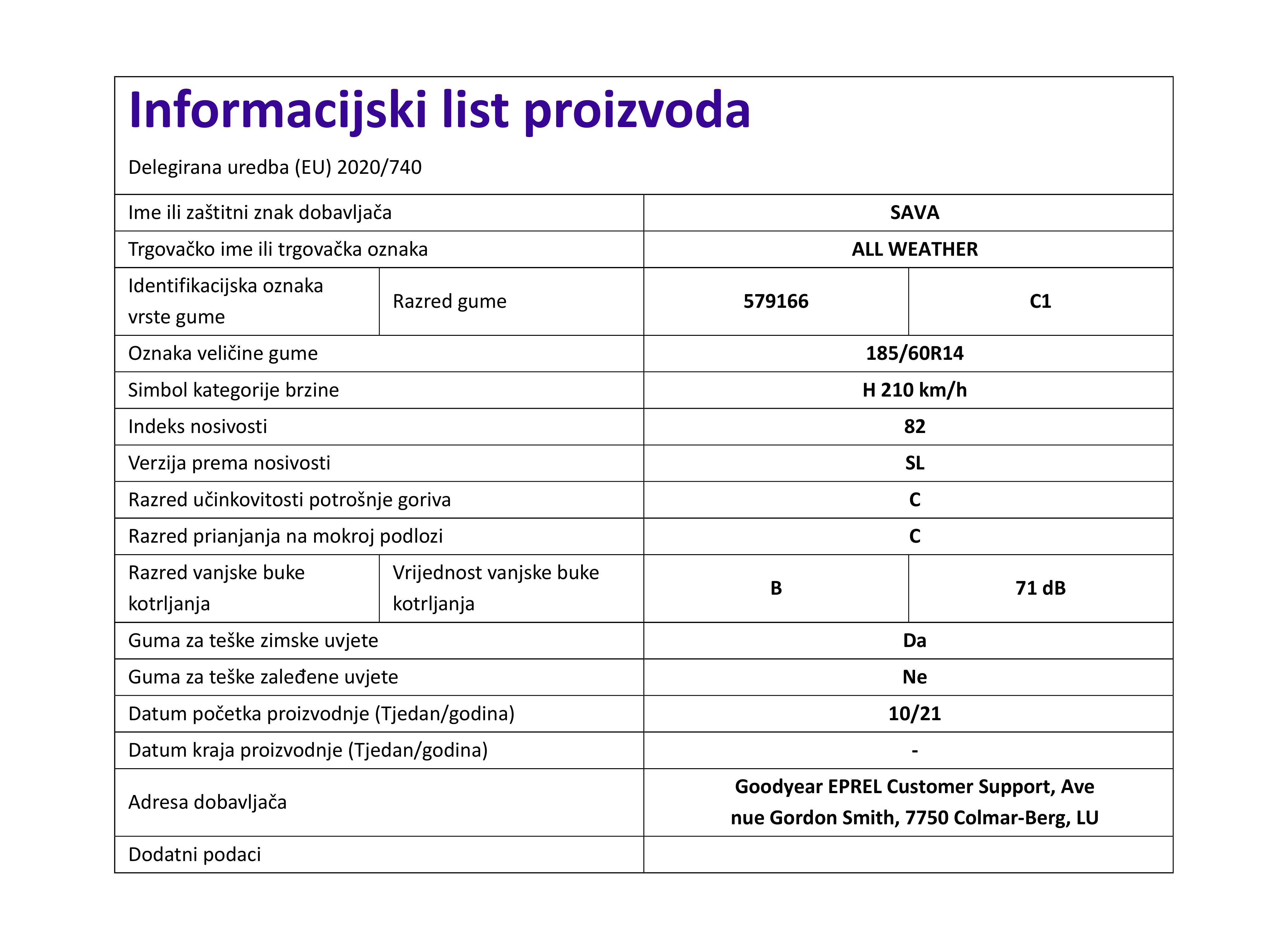 Cjelogodisnje osobne gume sava ALL WEATHER 185 / 60 R R14 82H