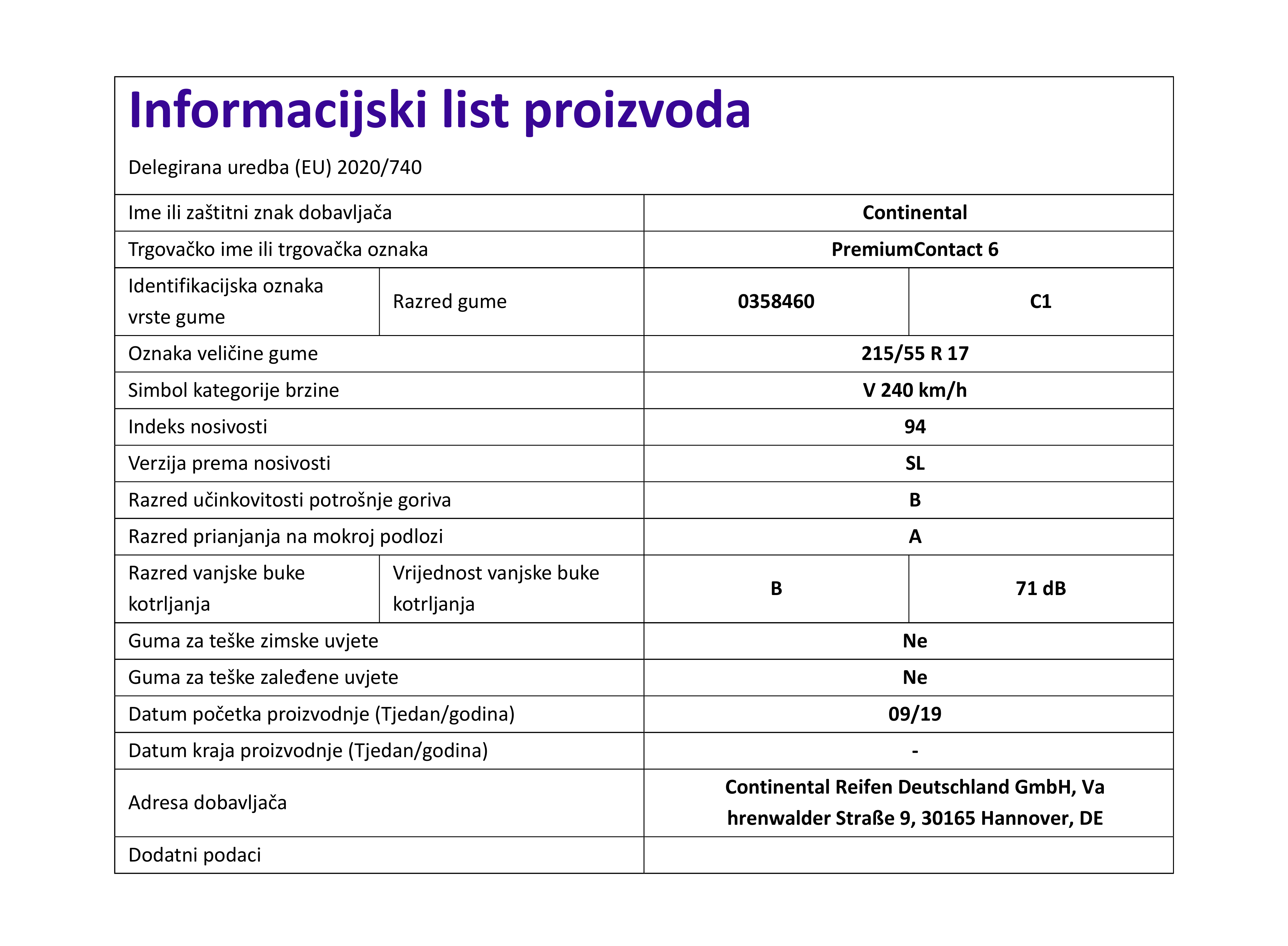 | Iskoristivost goriva | B |